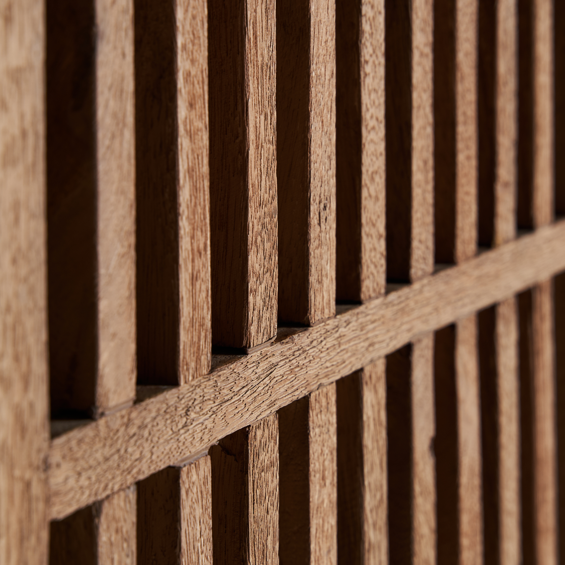 Aparador gaffney, de estilo industrial. Fabricado en madera de mango, en color negro, combinado con hierro, en color natural.