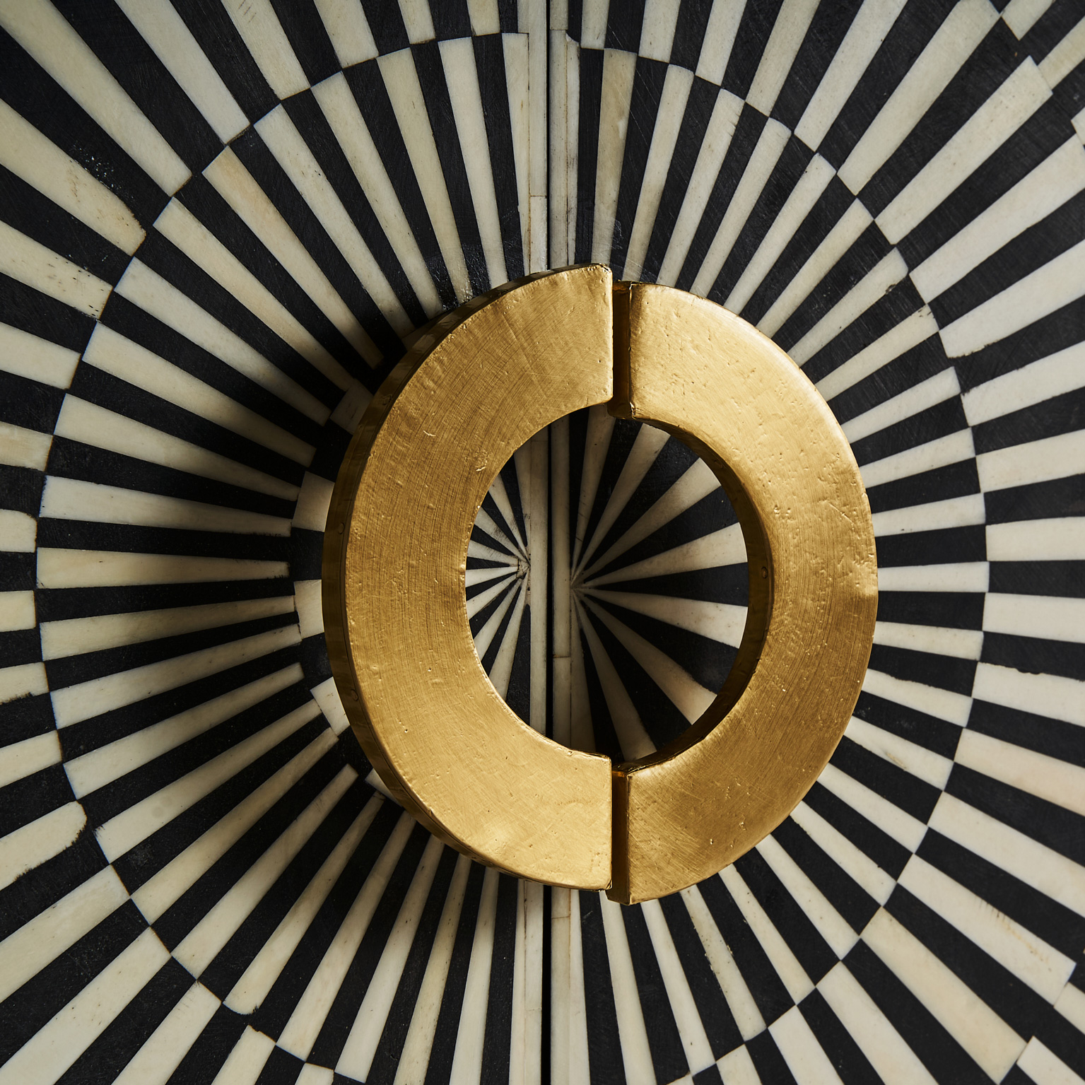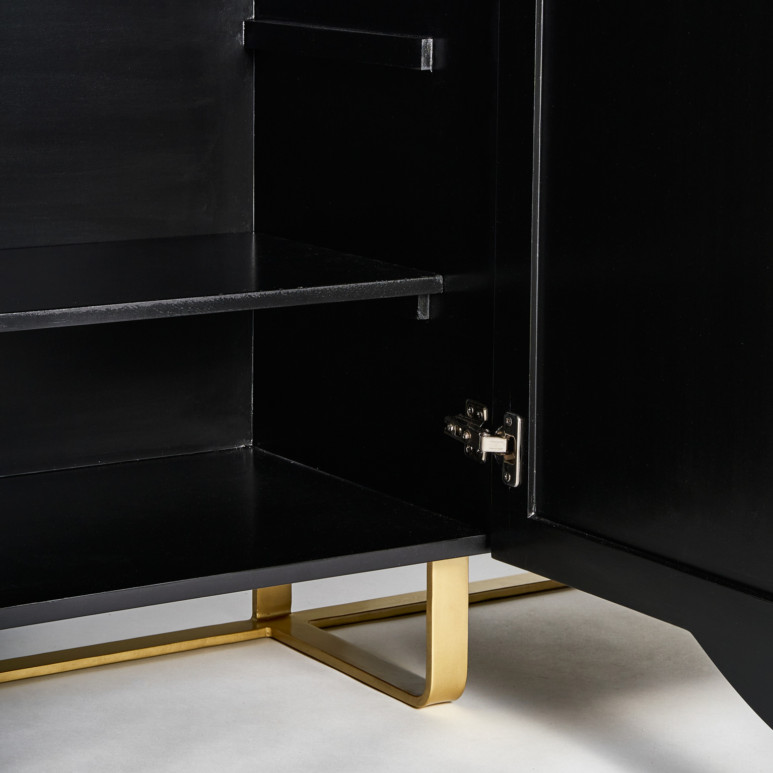 Aparador gatsby, en color negro/blanco/oro, de estilo art deco. Fabricado en madera dm, combinado con hierro y hueso.
