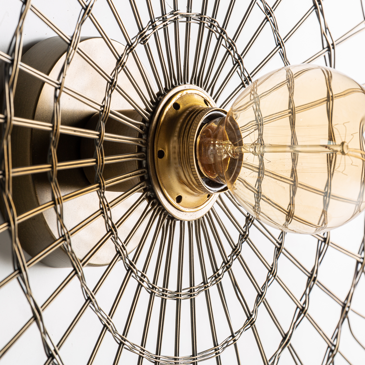 Aplique redonda, en color oro, de estilo industrial. Fabricado en hierro.