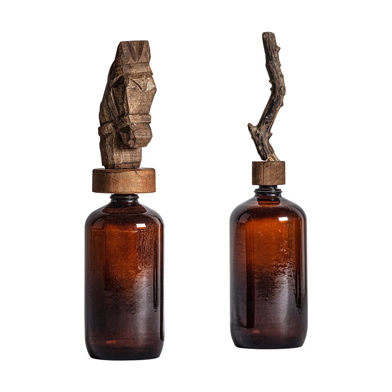 Botella decorativa tronco, en color burdeos, de estilo étnico. Fabricado en vidrio.