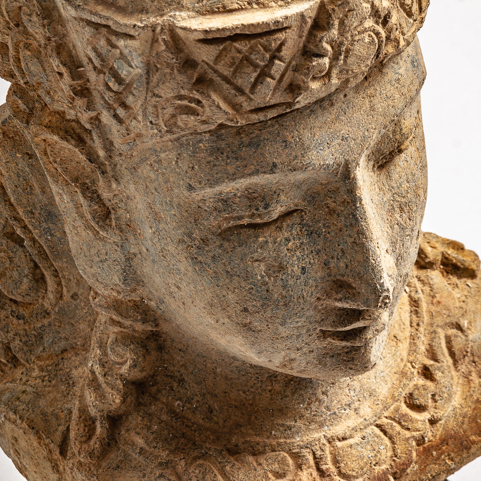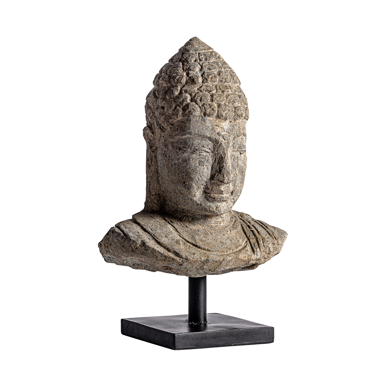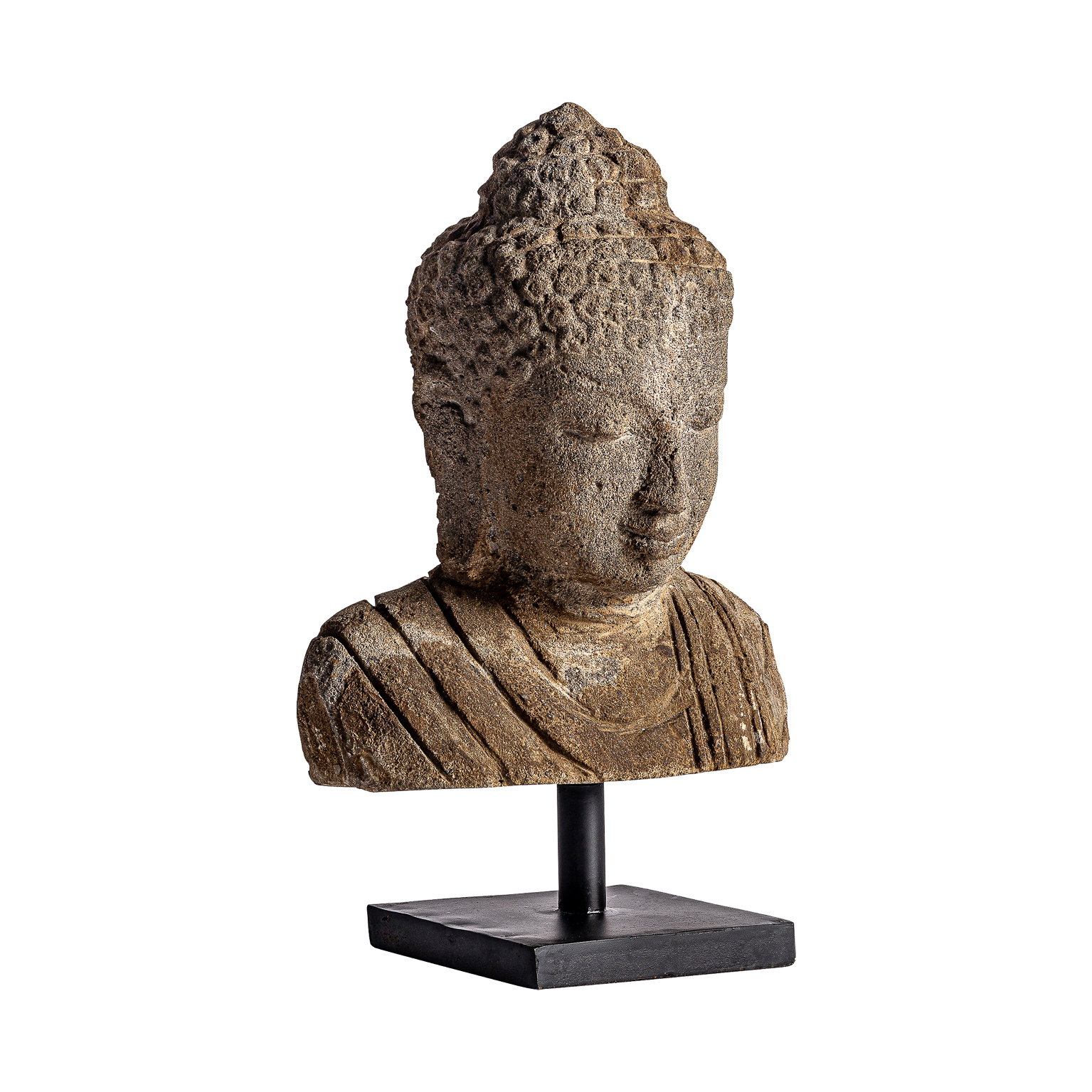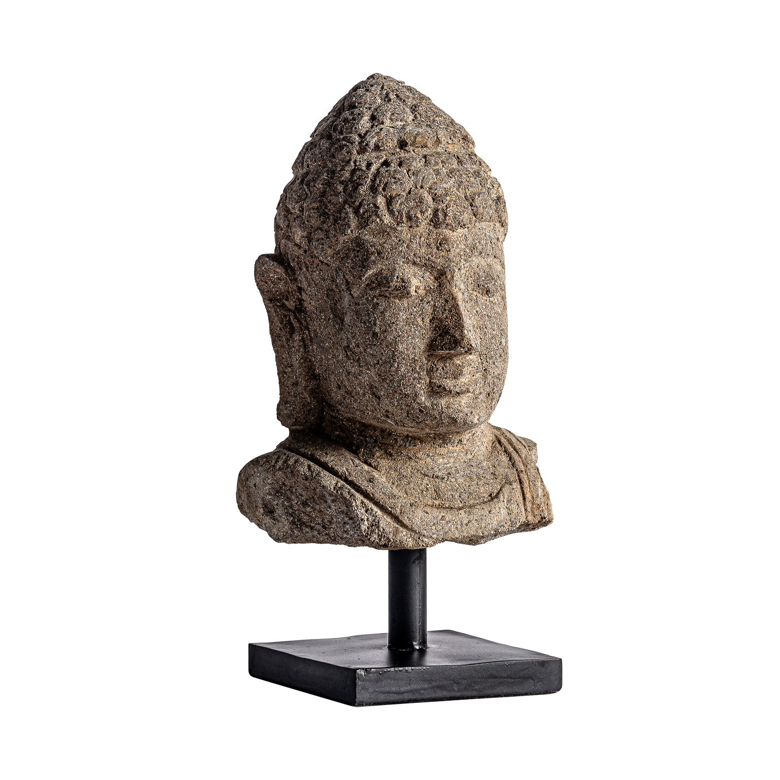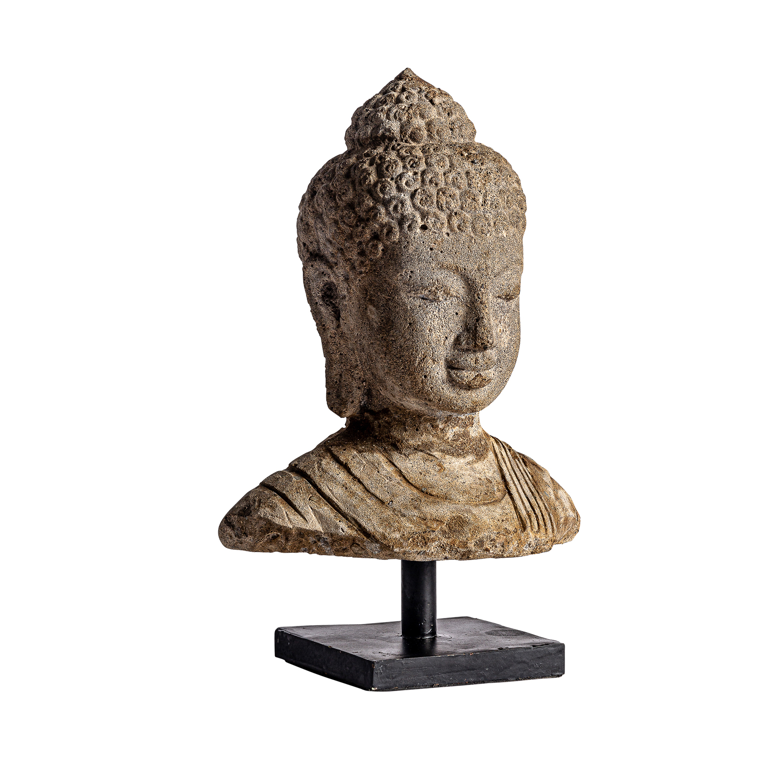 Busto surtido thailandés, en color marrón envejecido, de estilo oriental. Fabricado en piedra.