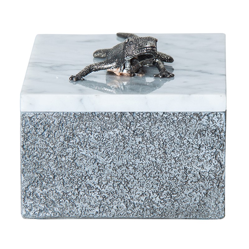 Caja Lagarto de estilo contemporáneo fabricado en mármol en color blanco en color gris.