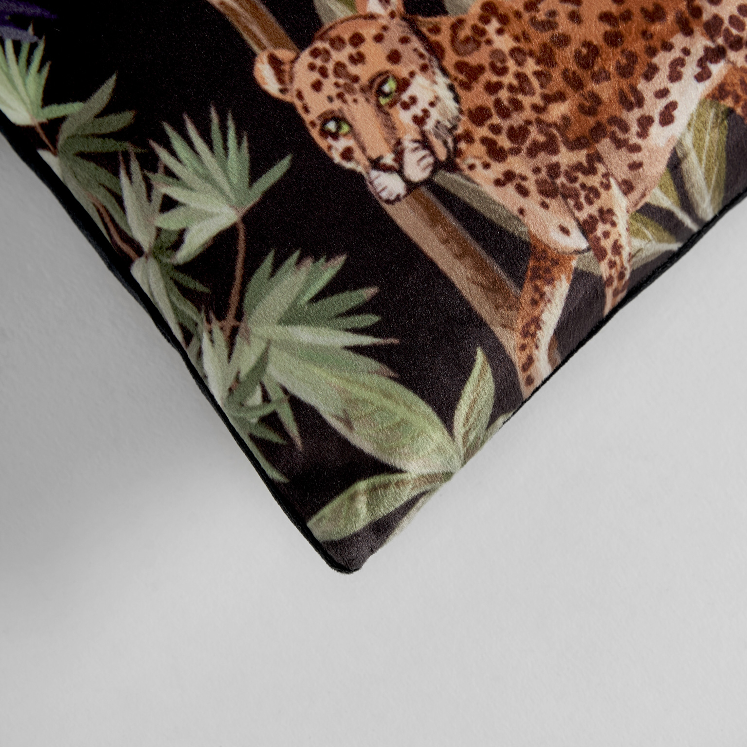 Cojín cuadrada aldora, en color negro, de estilo provenzal. Fabricado en terciopelo. Producto desenfundable.