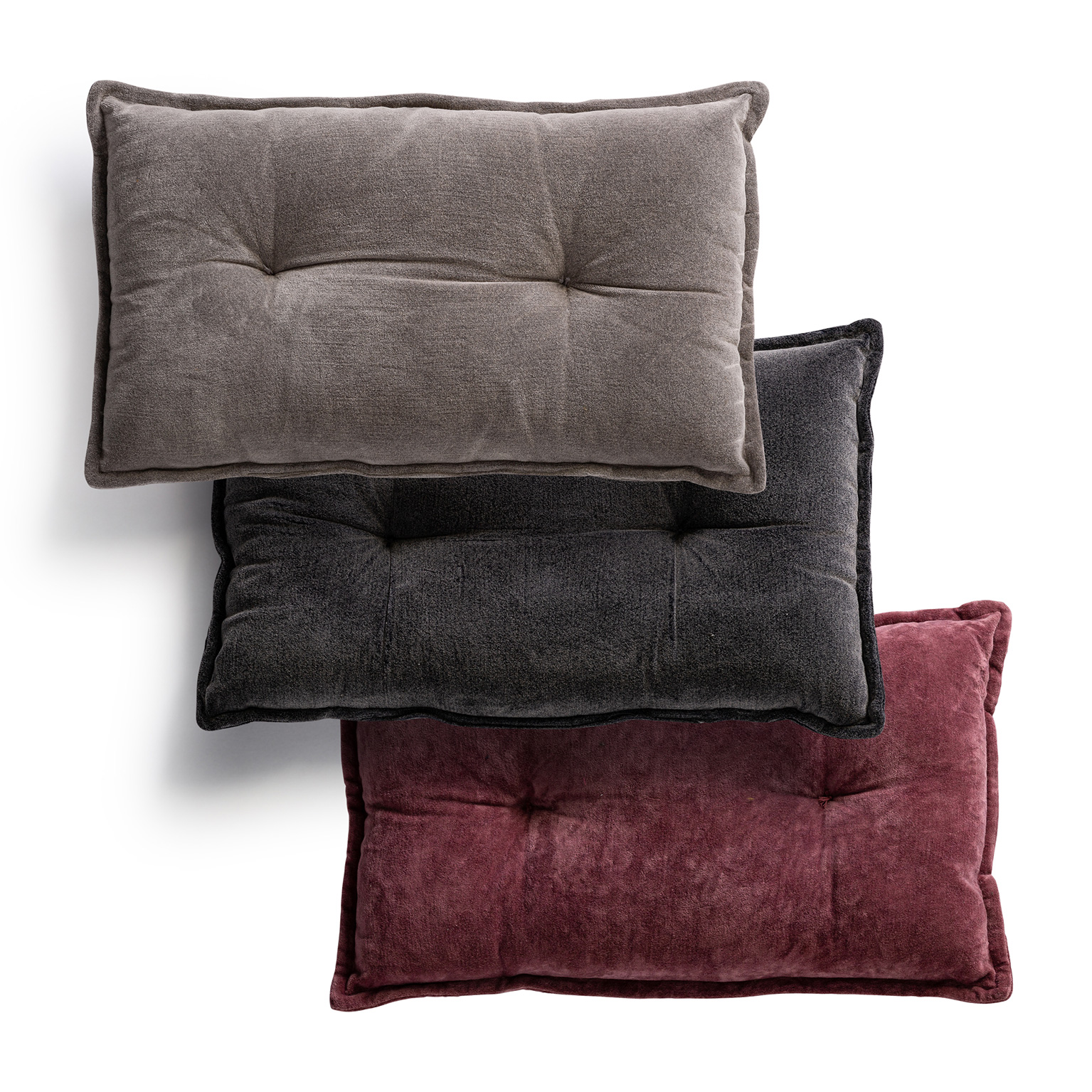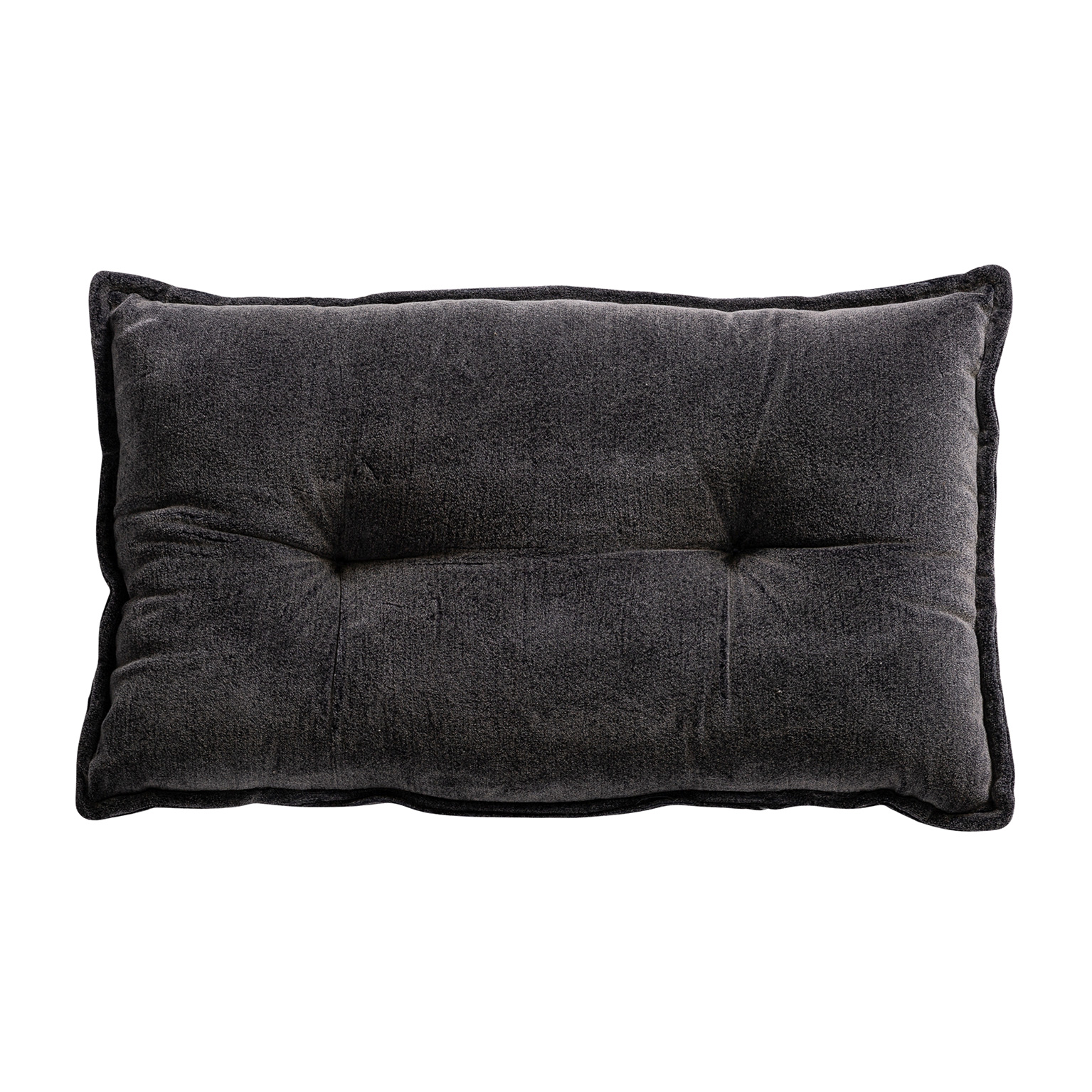Cojín blessme, en color gris oscuro, de estilo clásico. Fabricado en terciopelo, combinado con algodón y poliéster.