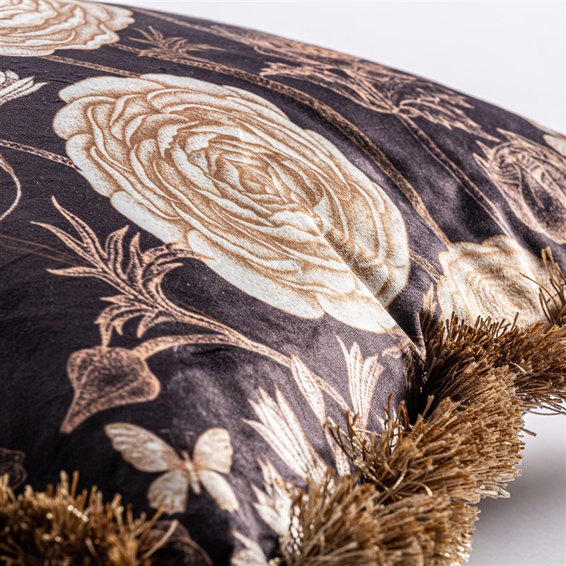 Cojín cuadrado cahil, en color tonos en marrón, de estilo shabby chic. Fabricado en terciopelo.