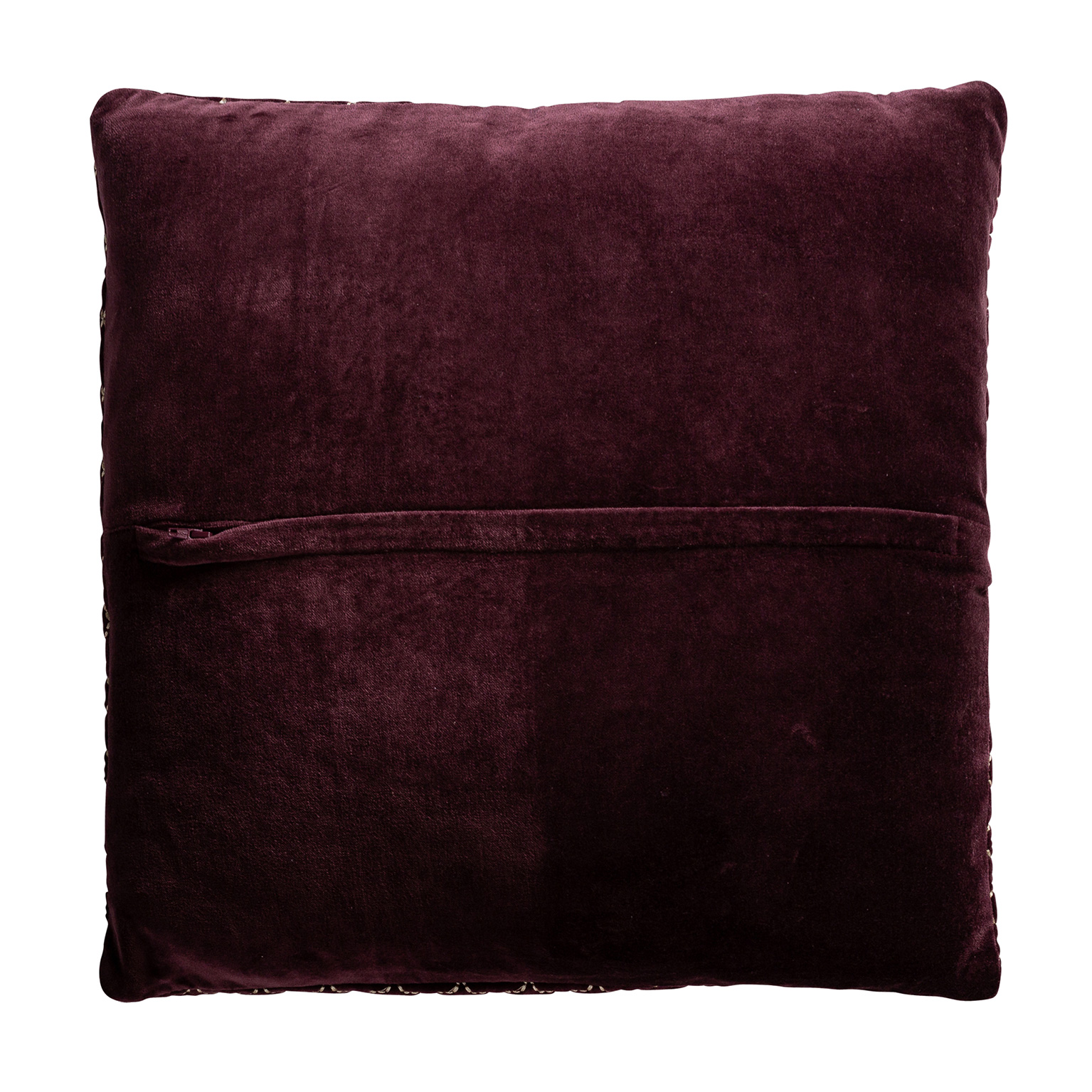 Cojín lis, en color marrón bordado, de estilo clásico. Fabricado en terciopelo, combinado con algodón y poliéster. Producto desenfundable.