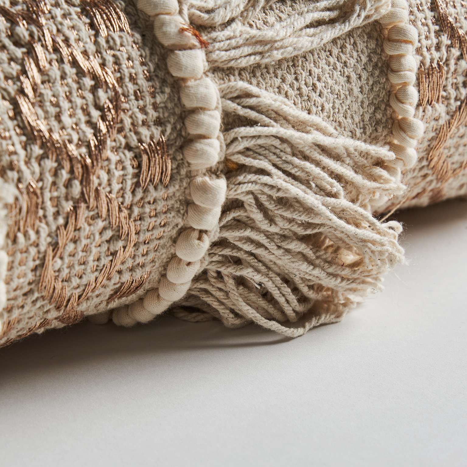 Cojín Whil de estilo vintage, fabricado en algodón en color crema con acabado bordado, combinado con hilo.