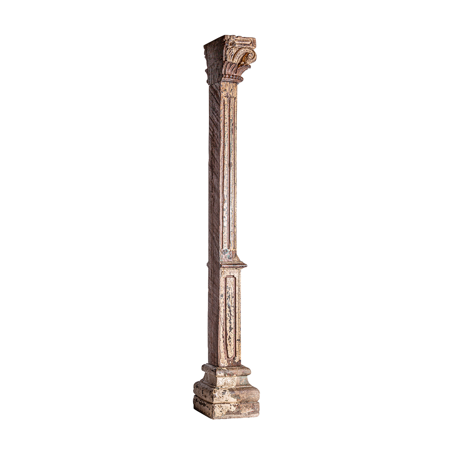 Columna dasha, en color tonos en marrón envejecido, de estilo étnico. Fabricado en madera de teka.
