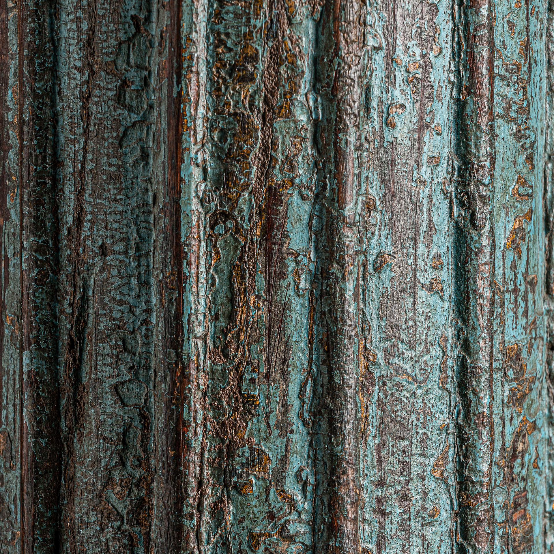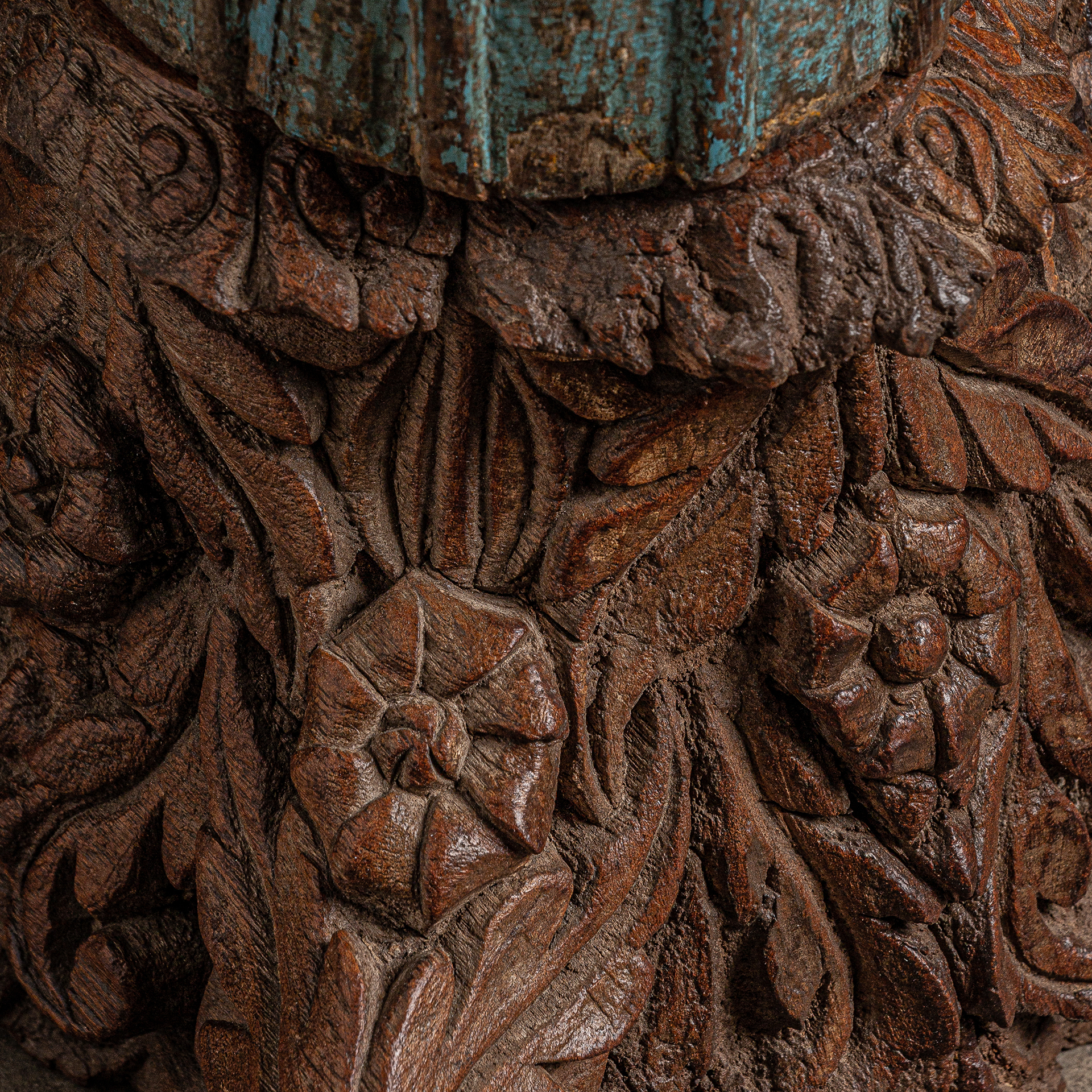 Columna gazit, en color tonos de azul envejecido, de estilo étnico. Fabricado en madera de teka. Producto desmontable.