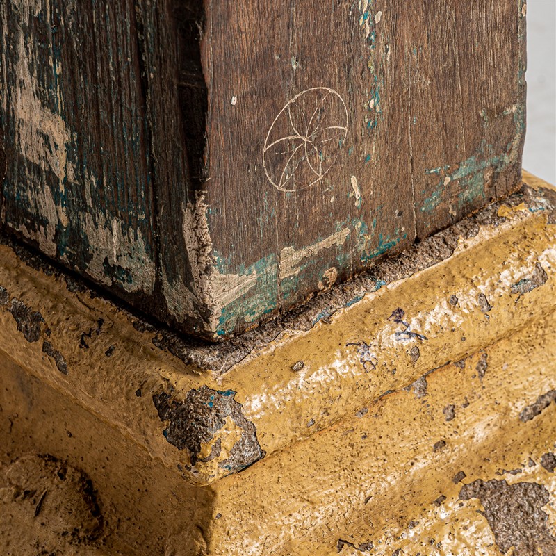 Columna gelhe, en color marrón envejecido, de estilo étnico. Fabricado en madera de teka. Producto desmontable.