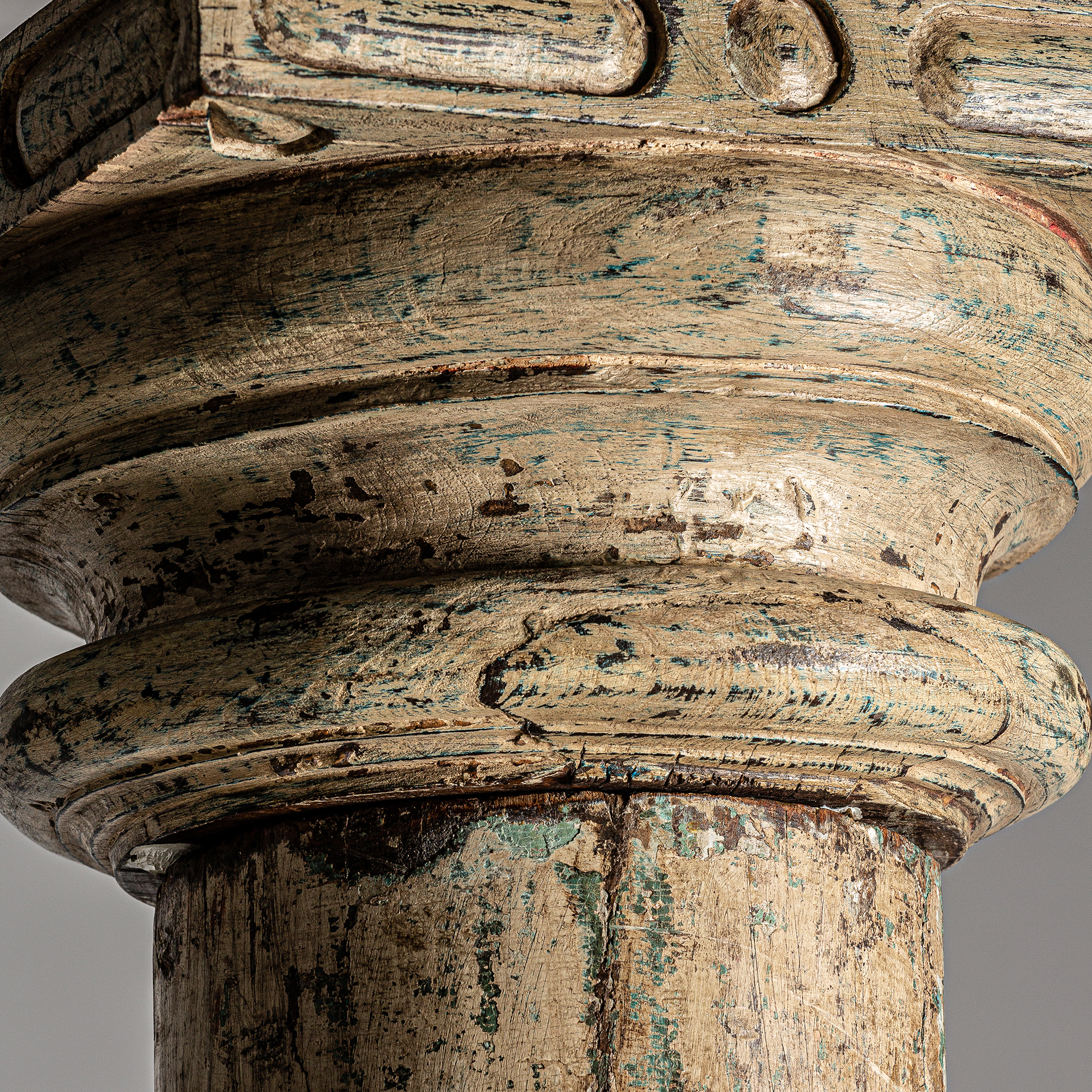 Columna gelue, en color marrón envejecido, de estilo étnico. Fabricado en madera de teka. Producto desmontable.