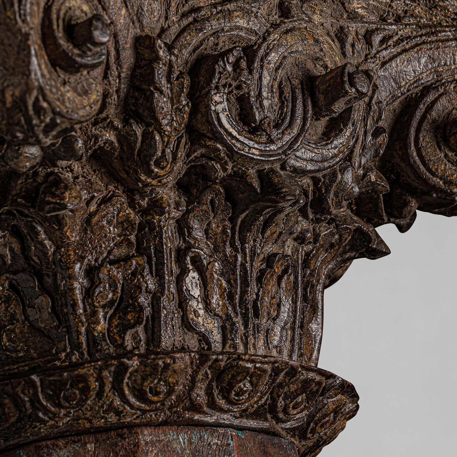Columna oifa, en color marrón envejecido, de estilo étnico. Fabricado en madera de teka. Producto desmontable.