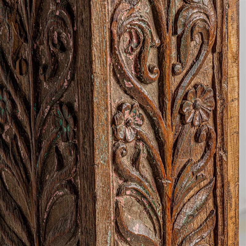 Columna roden, en color marrón envejecido, de estilo étnico. Fabricado en madera de teka. Producto desmontable.