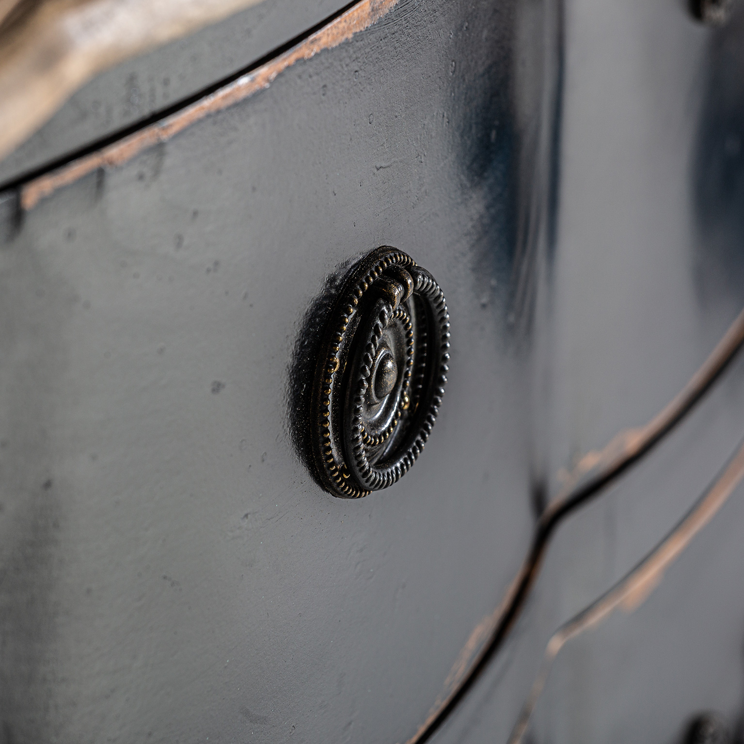 Cómoda Zenica de estilo provenzal fabricado en madera de pino en color negro en color natural.