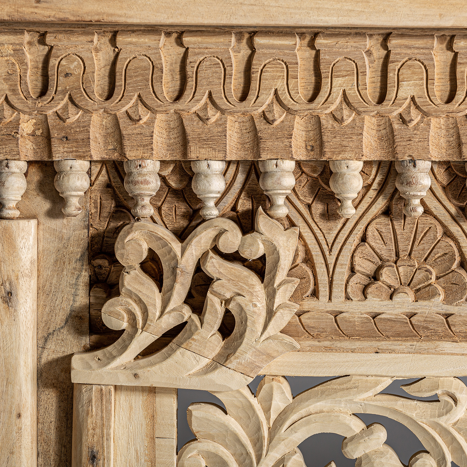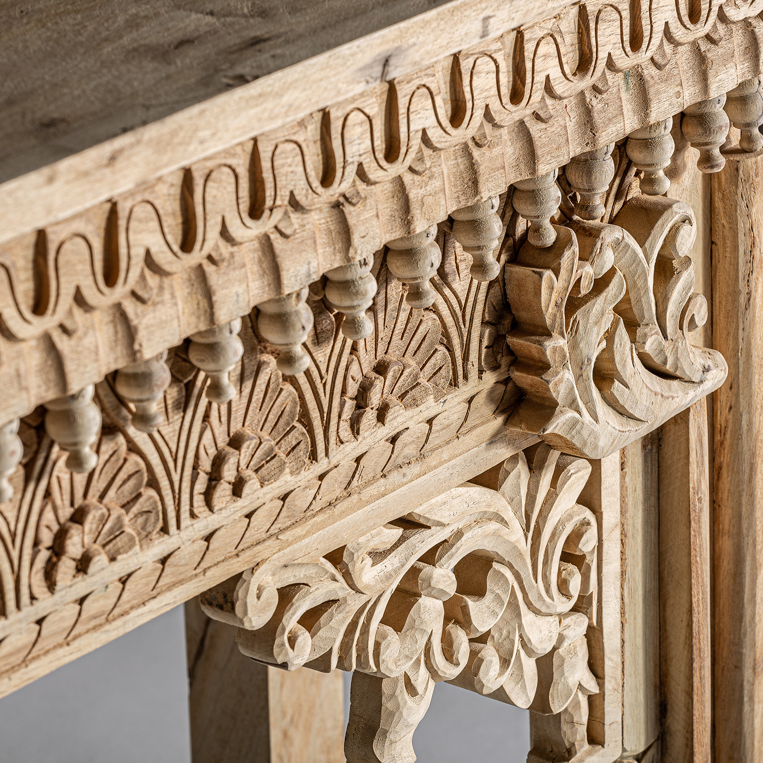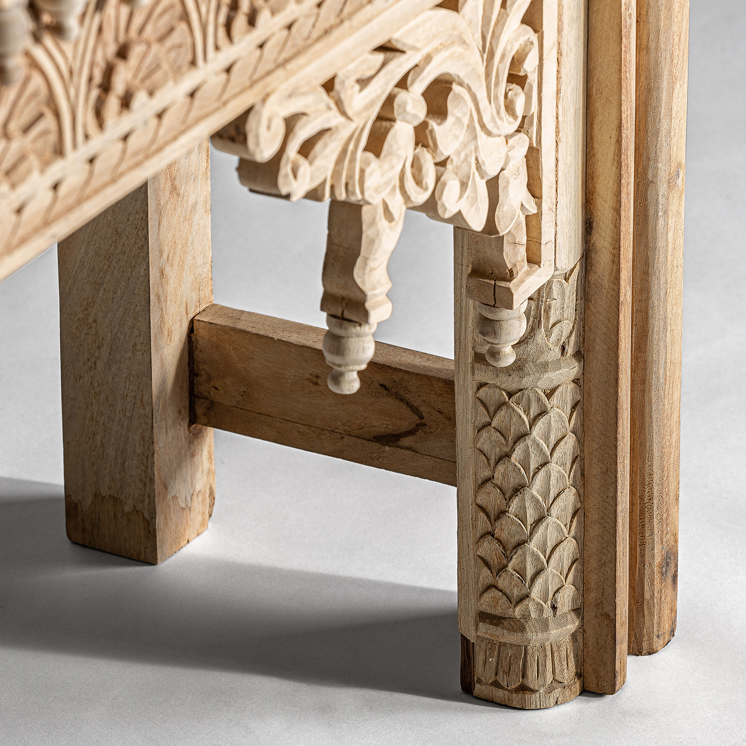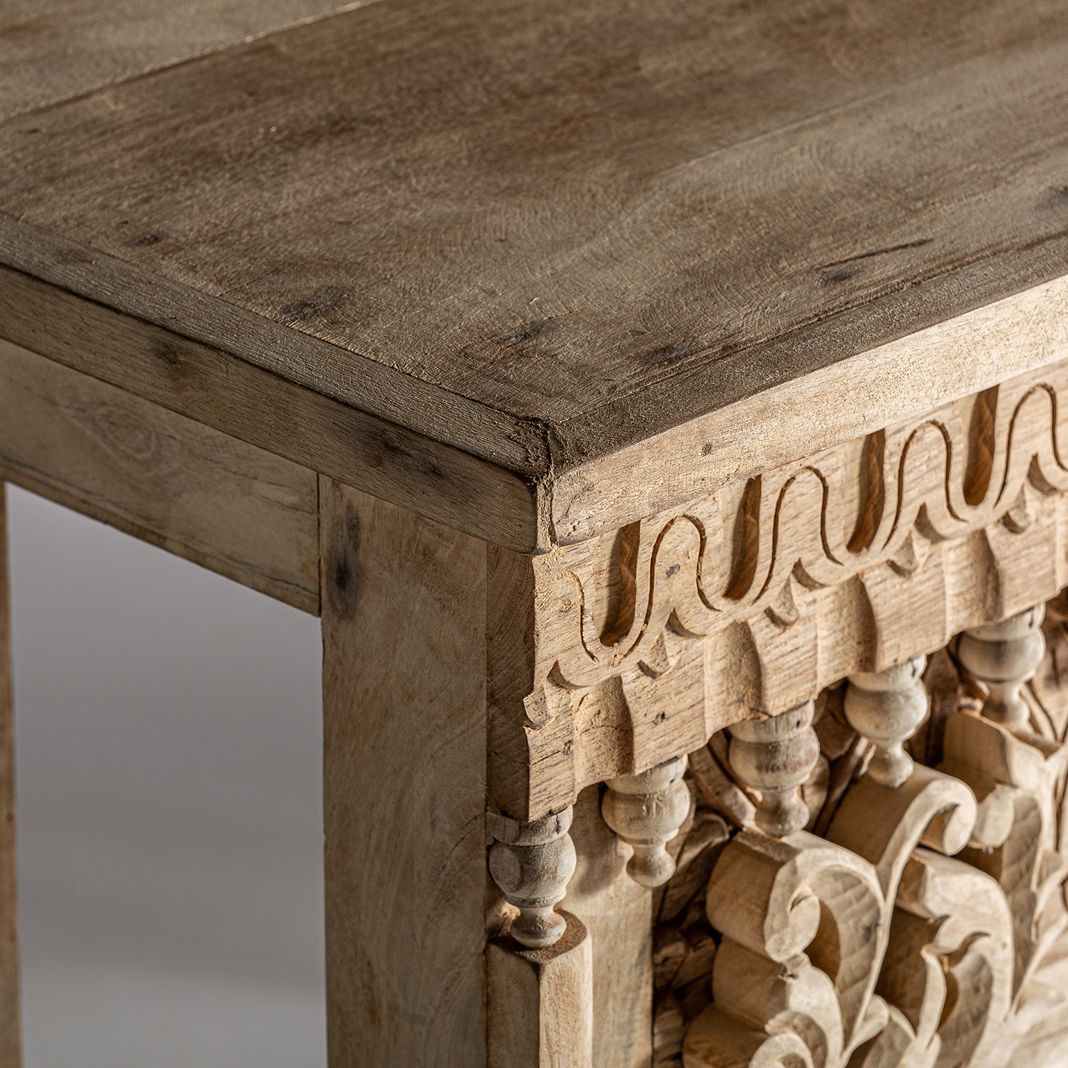 Consola bekily, de estilo étnico. Fabricado en madera de teka, en color marrón envejecido.