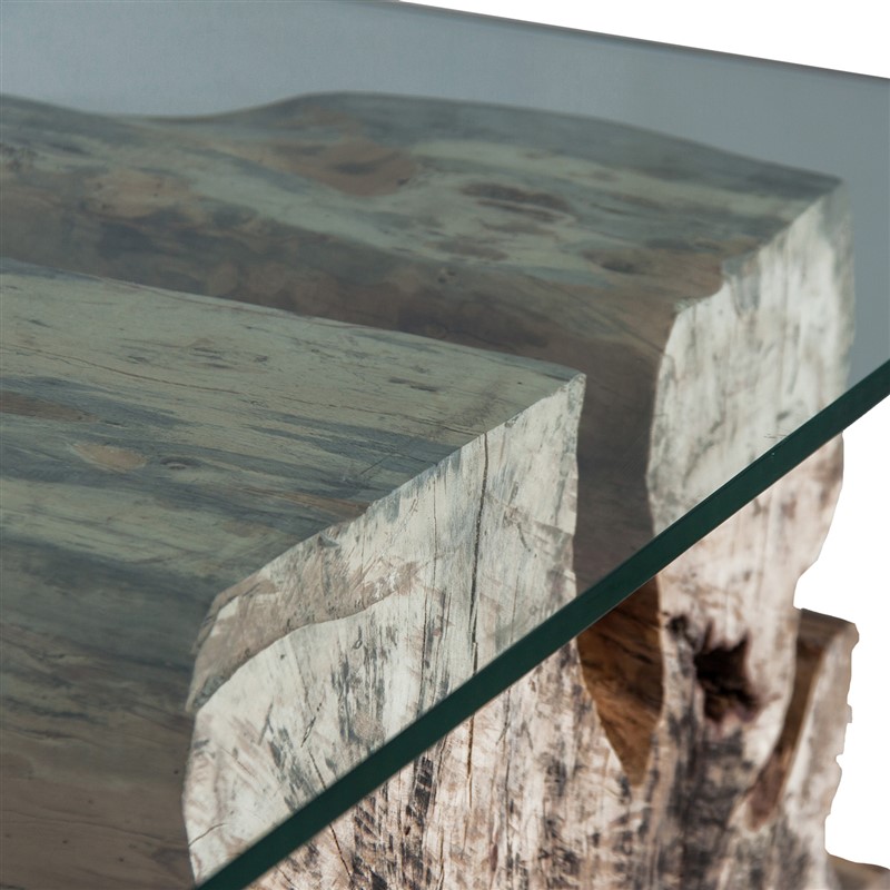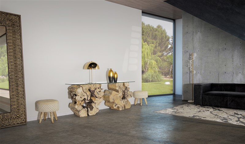 Consola beyneu de estilo contemporáneo, fabricado en madera tropical en color marrón. Producto desmontable.