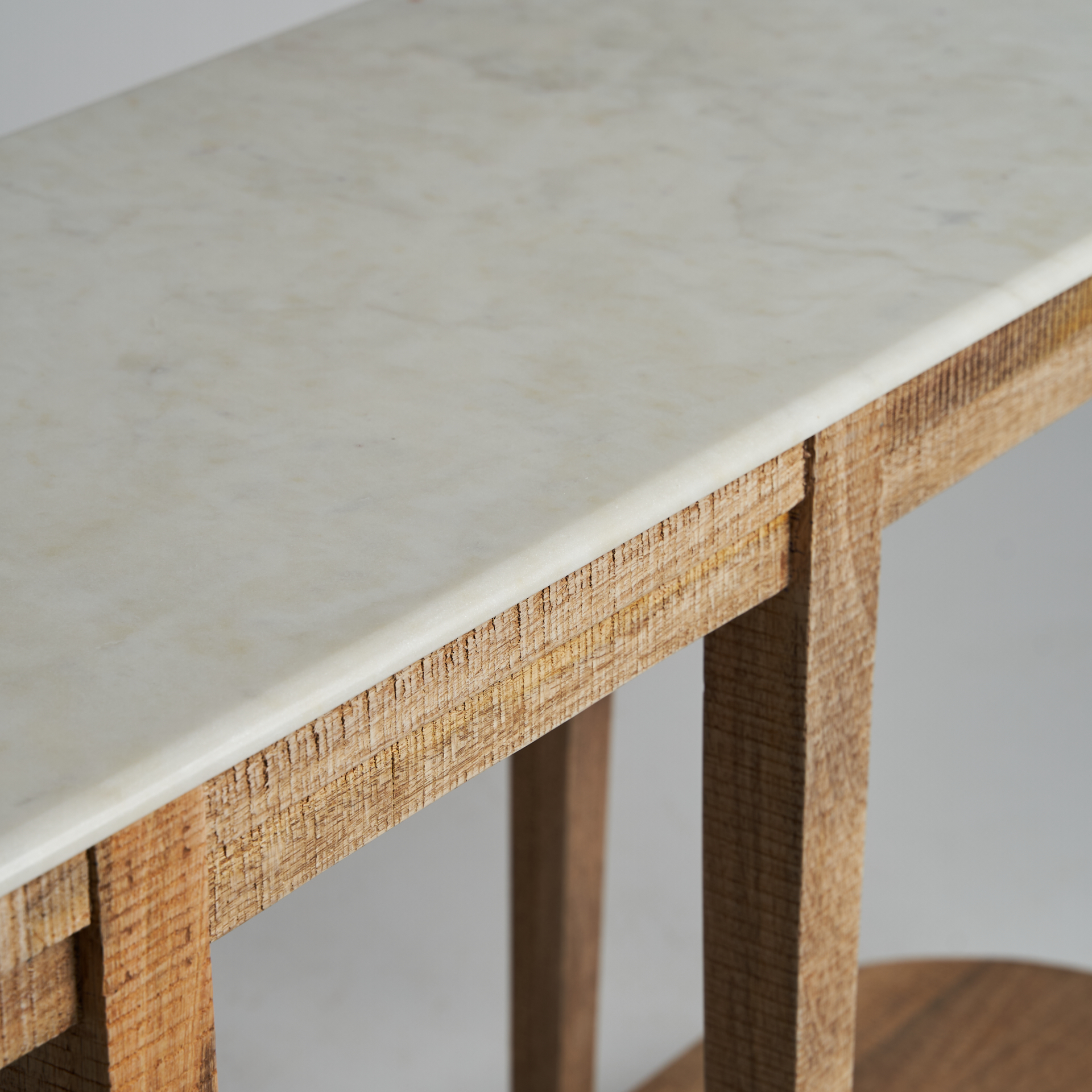 Consola mersch, de estilo colonial. Fabricado en madera de mango, en color marrón, combinado con mármol.