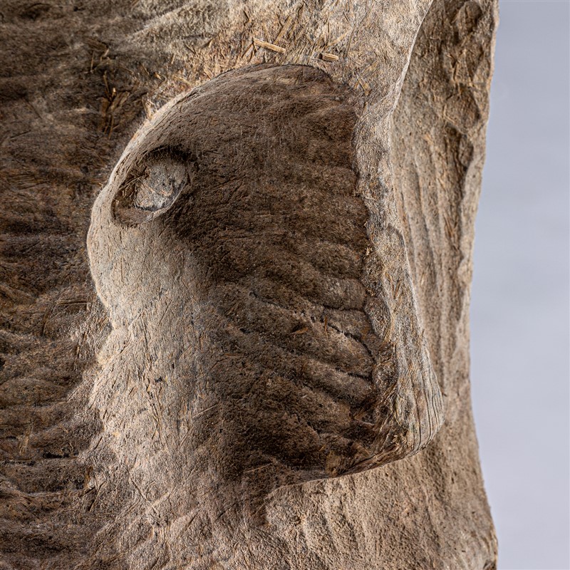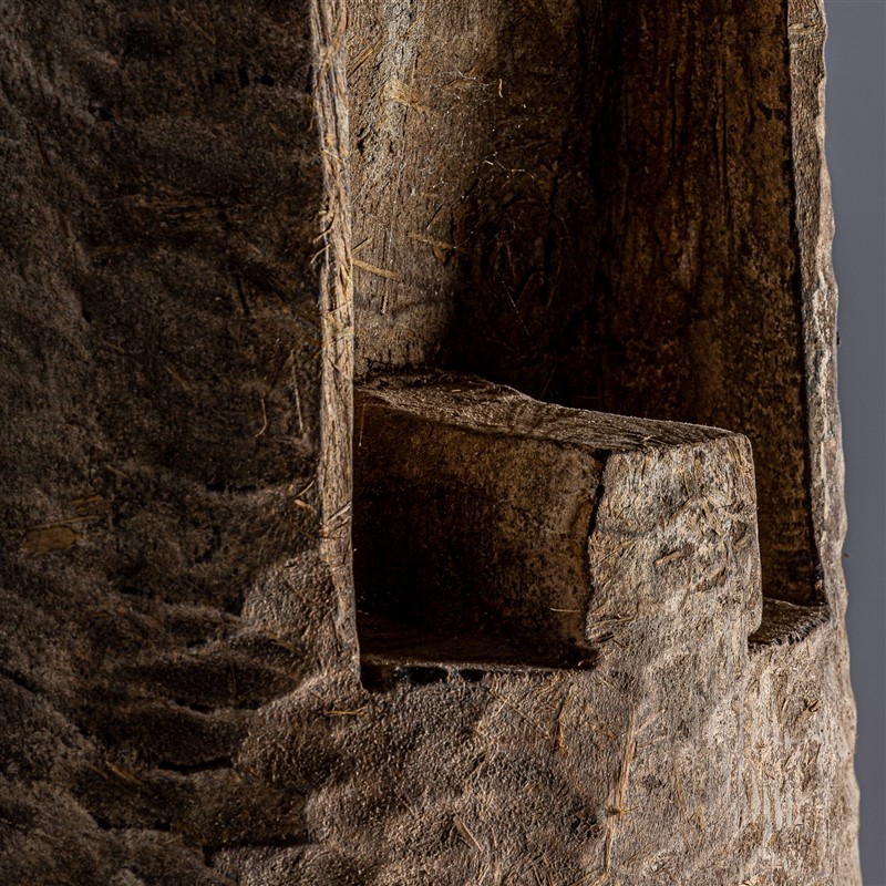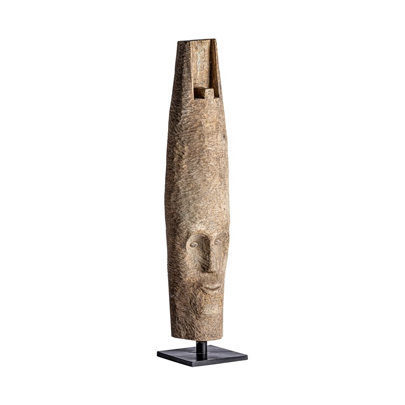 Escultura, en color negro/natural envejecido, de estilo étnico. Fabricado en madera de mango, combinado con hierro.