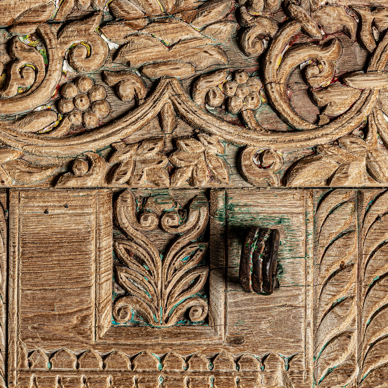 Espejo Argeen de estilo étnico, fabricado en madera de teka en color marrón con acabado envejecido, combinado con espejo.