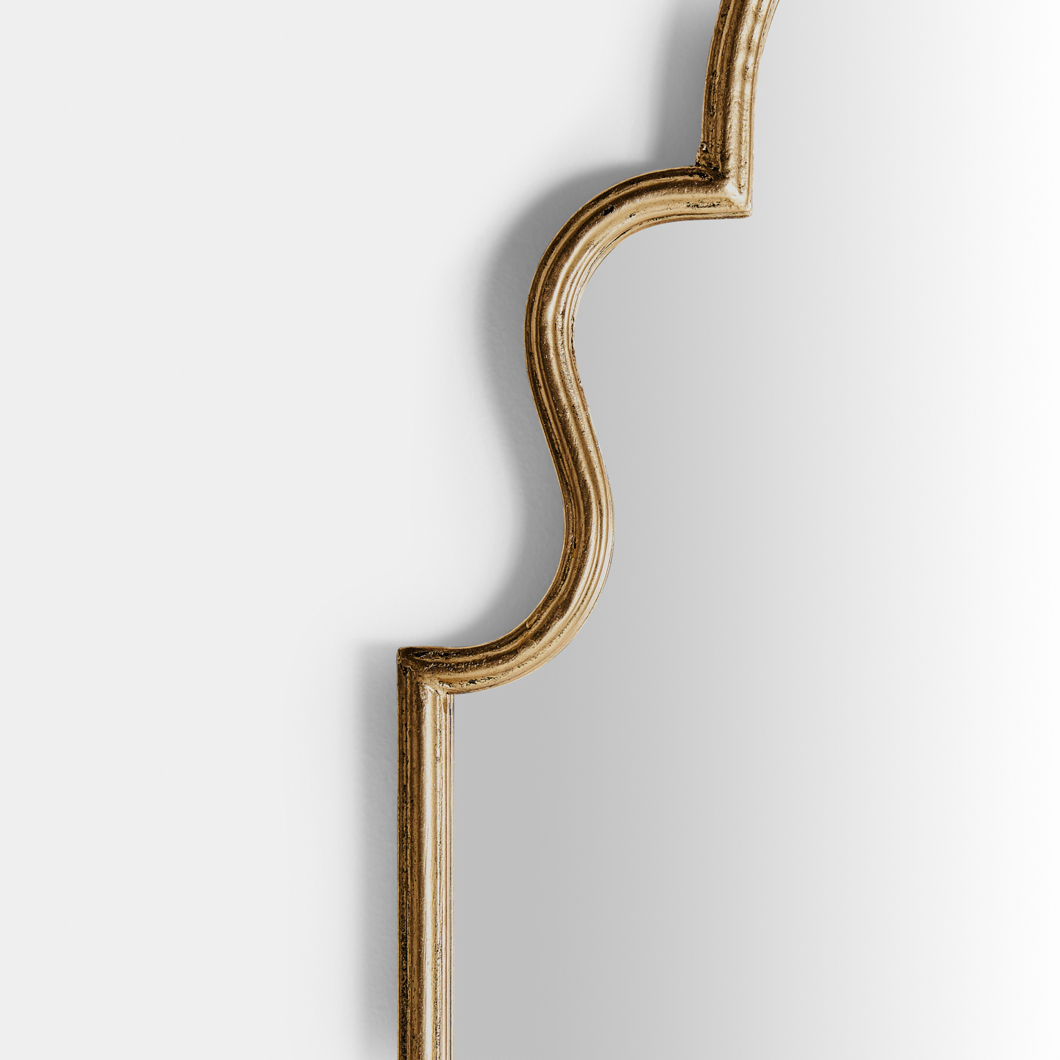 Espejo claut, en color oro, de estilo art deco. Fabricado en hierro, combinado con espejo.