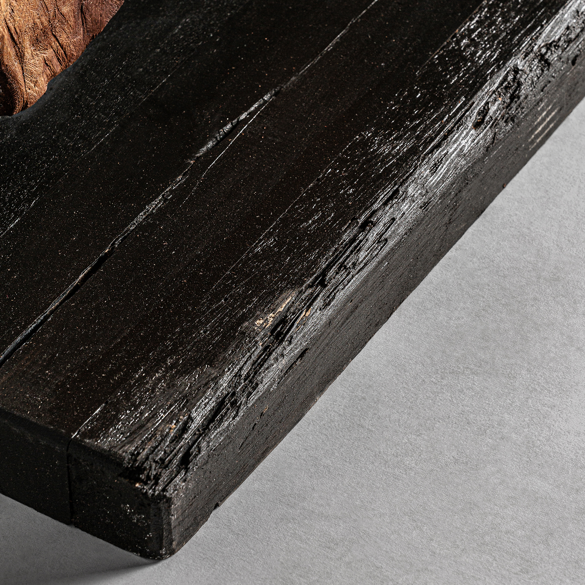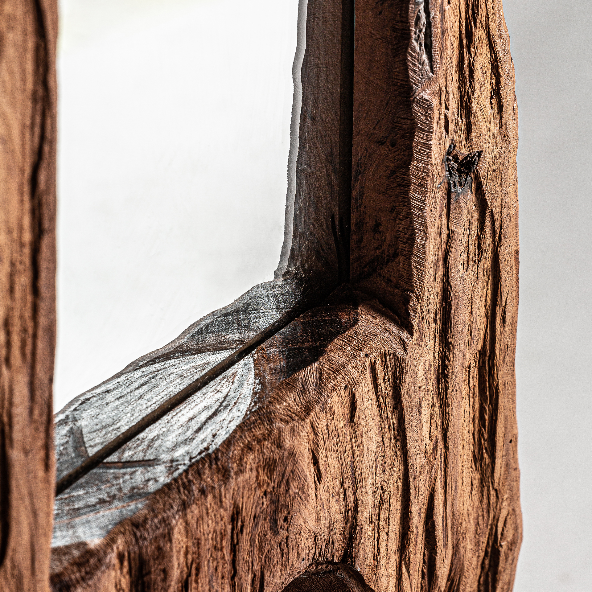 Espejo de pie pokuru, en color marrón envejecido, de estilo étnico. Fabricado en madera de teka, combinado con espejo.