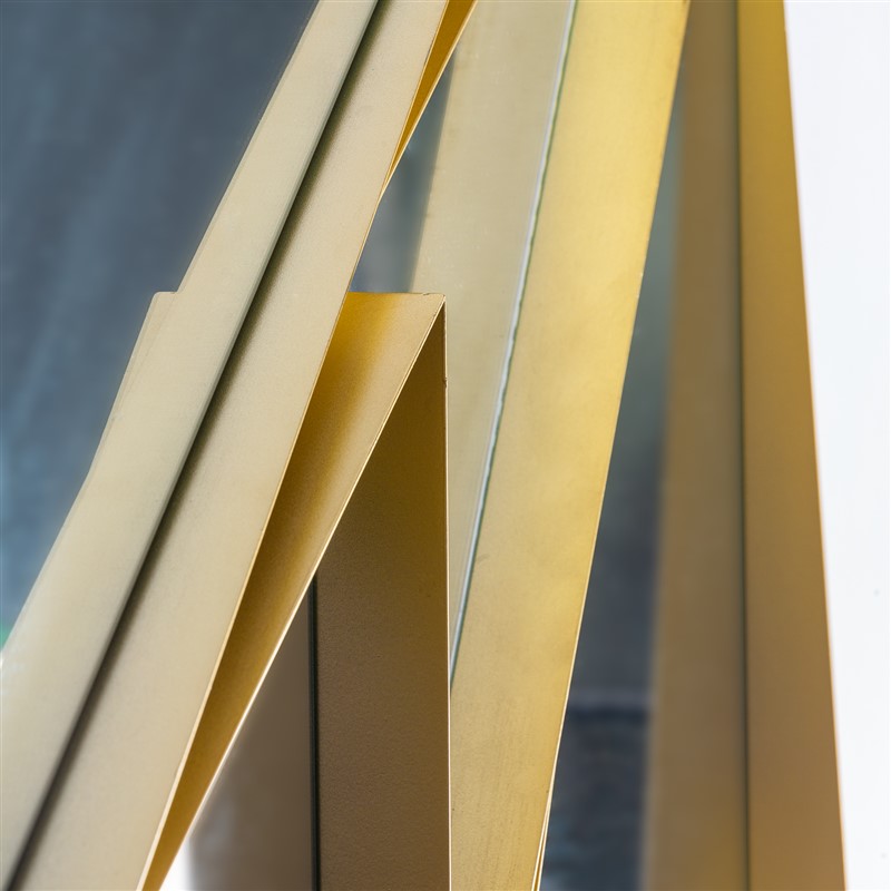 Espejo triangular kodie, en color dorado, de estilo art deco. Fabricado en espejo, combinado con latón. Compatible con: 27612,27613,27614,27615.