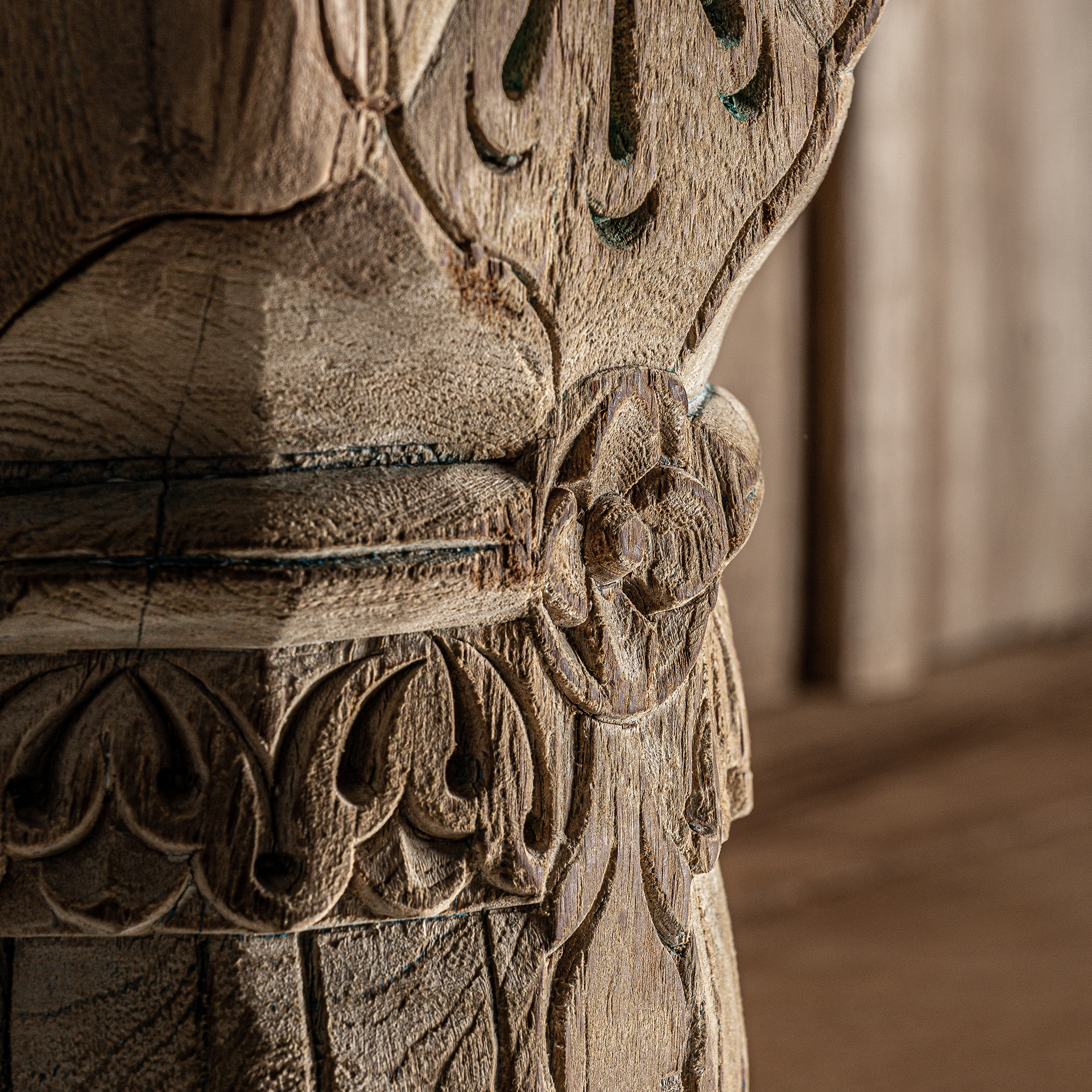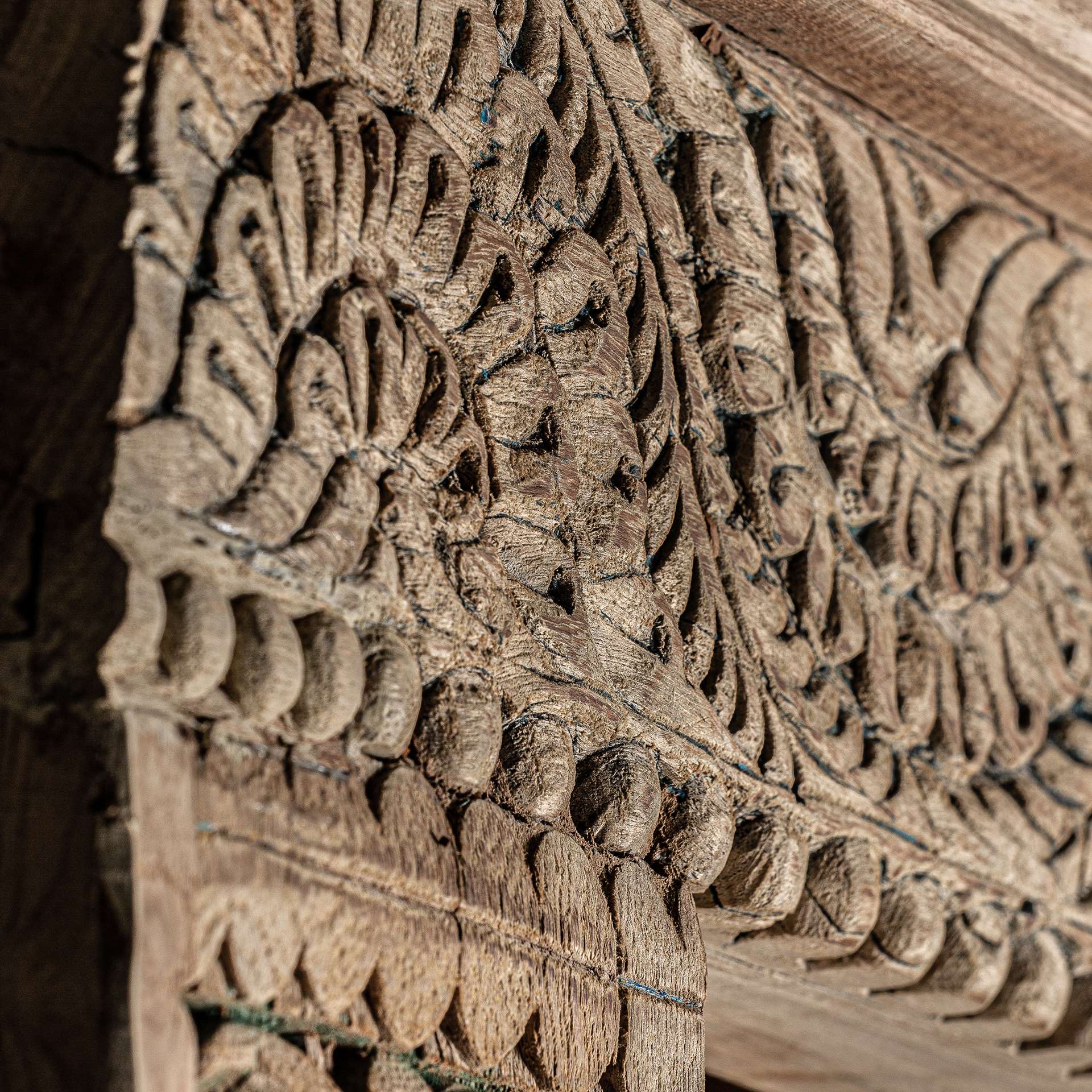 Estanteria Tedim de estilo étnico, fabricado en madera de mango en color marrón con acabado envejecido, combinado con madera de teka.