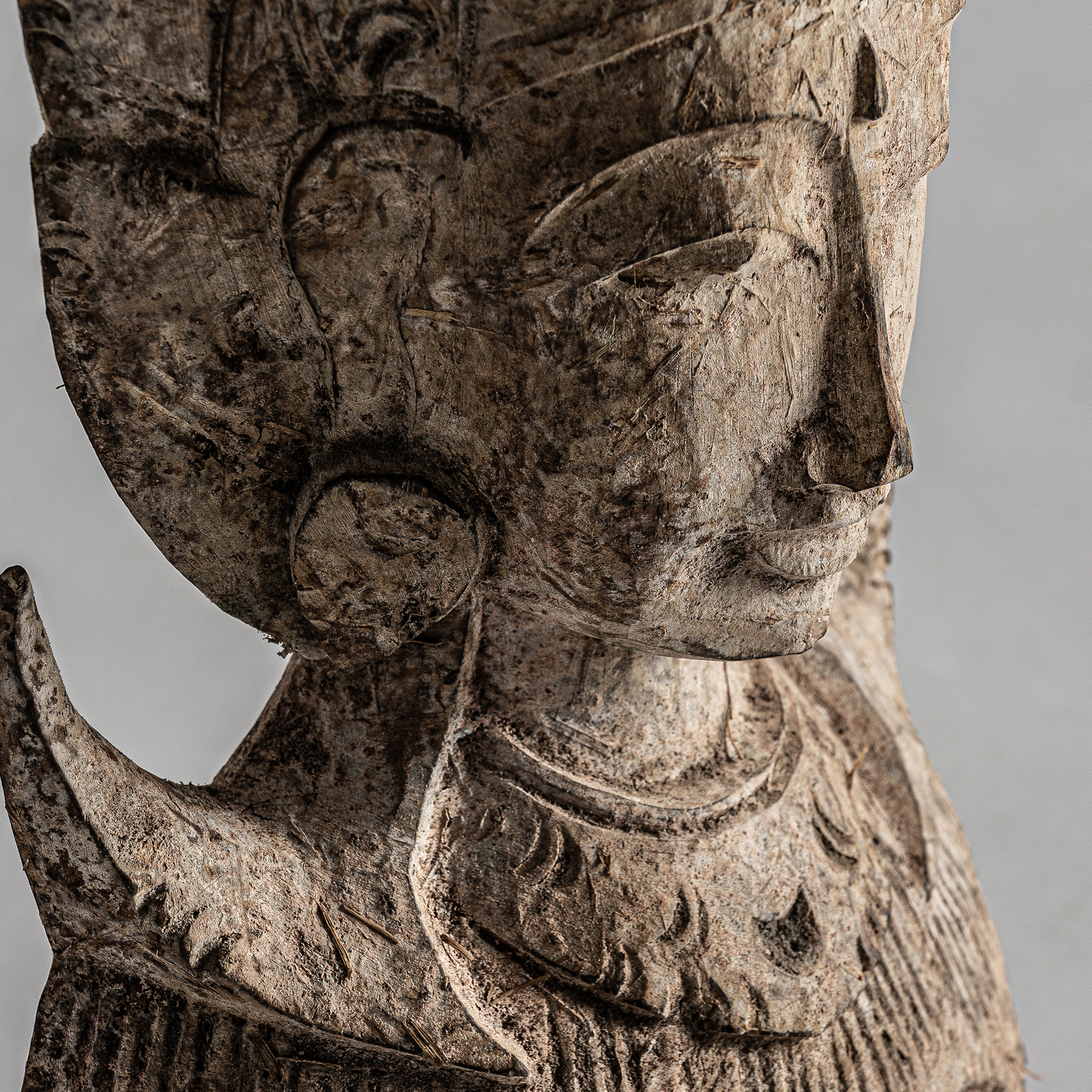 Figura decorativa, en color natural envejecido, de estilo étnico. Fabricado en madera tropical.