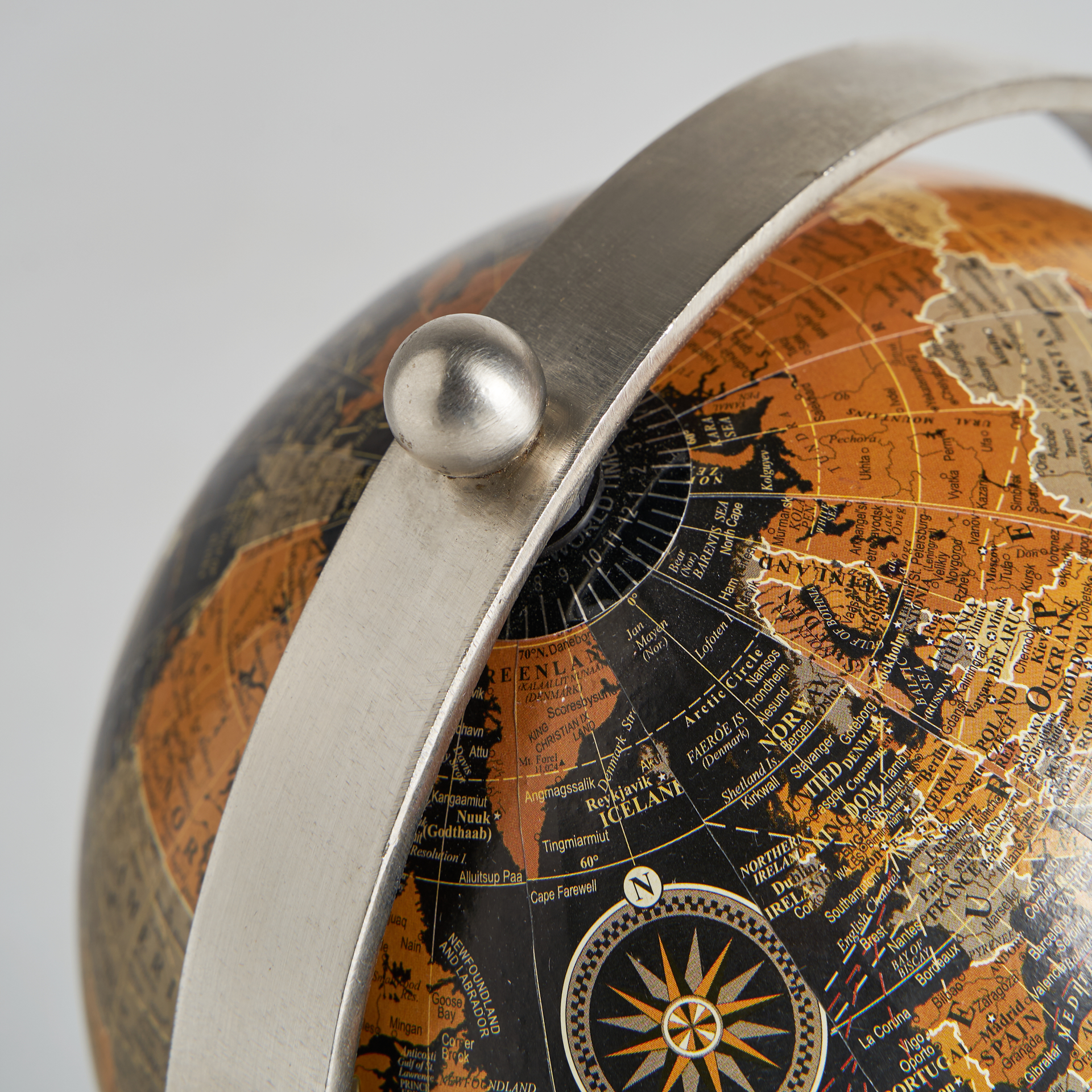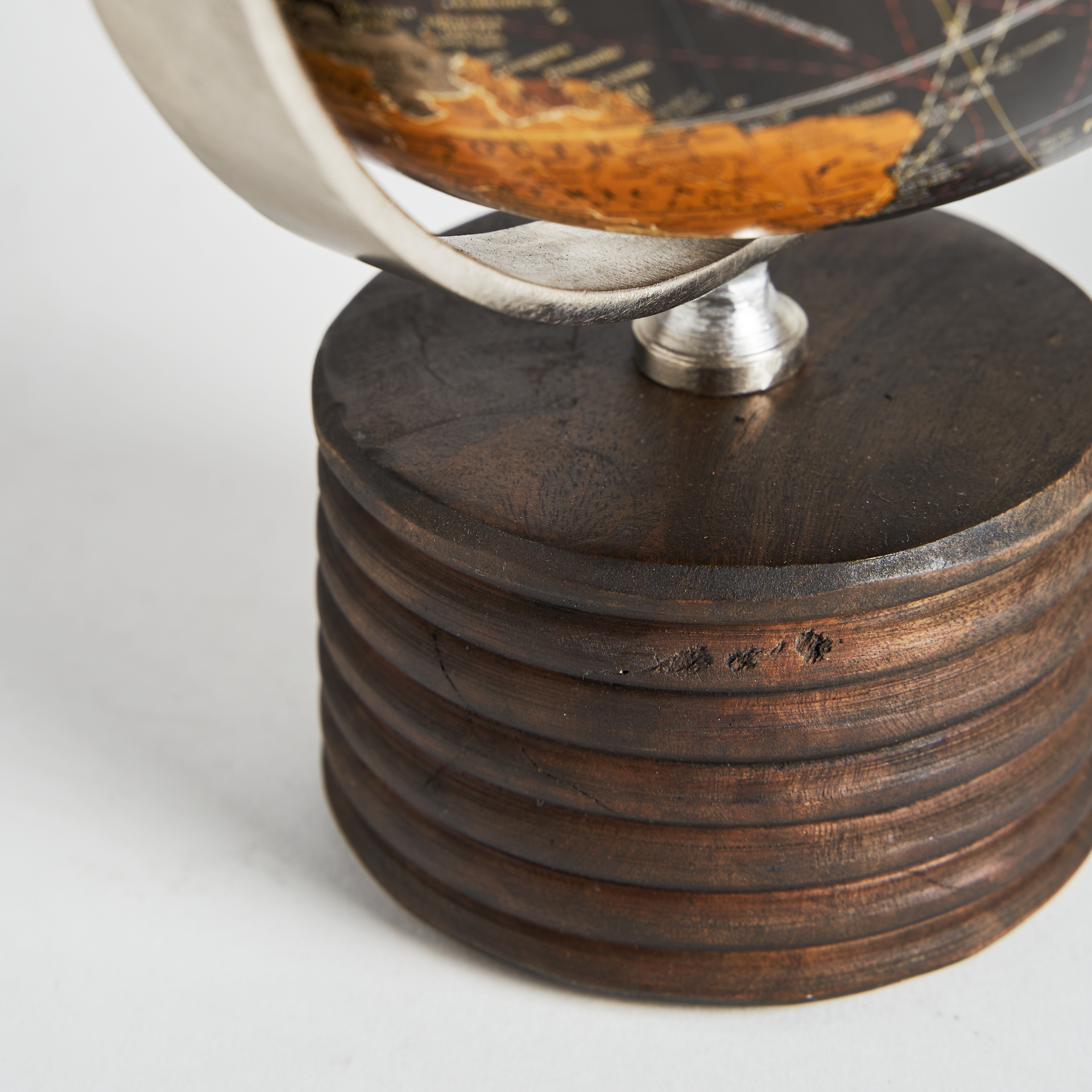 Figura decorativa bola mundo, en color negra, de estilo vintage. Fabricado en madera de mango.