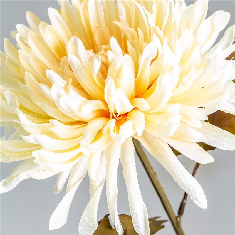 Flor crisantema, en color amarillo, de estilo clásico. Fabricado en plástico, combinado con poliéster.