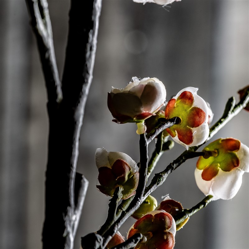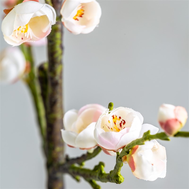 Flor del ciruelo, en color blanco, de estilo clásico. Fabricado en plástico, combinado con poliéster.