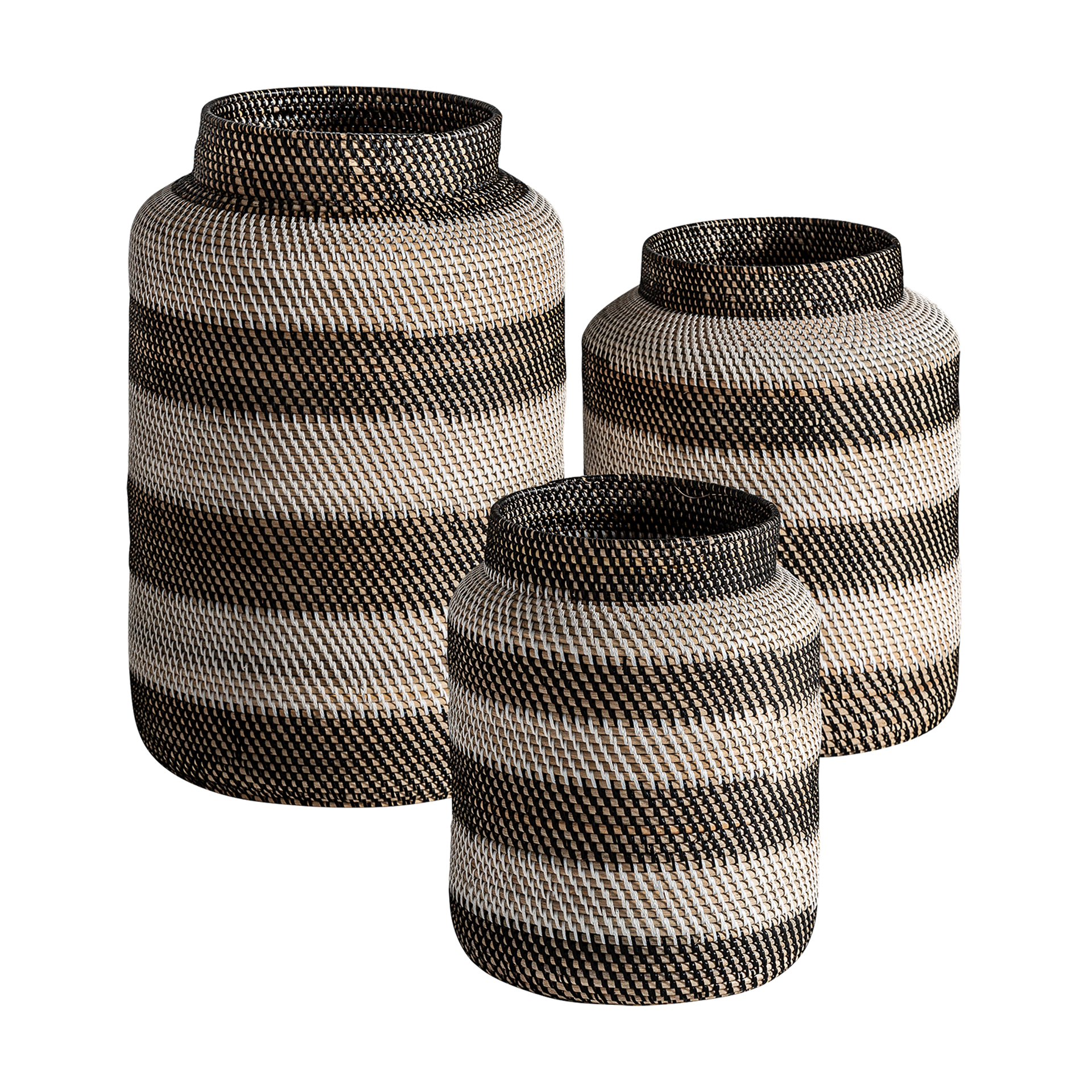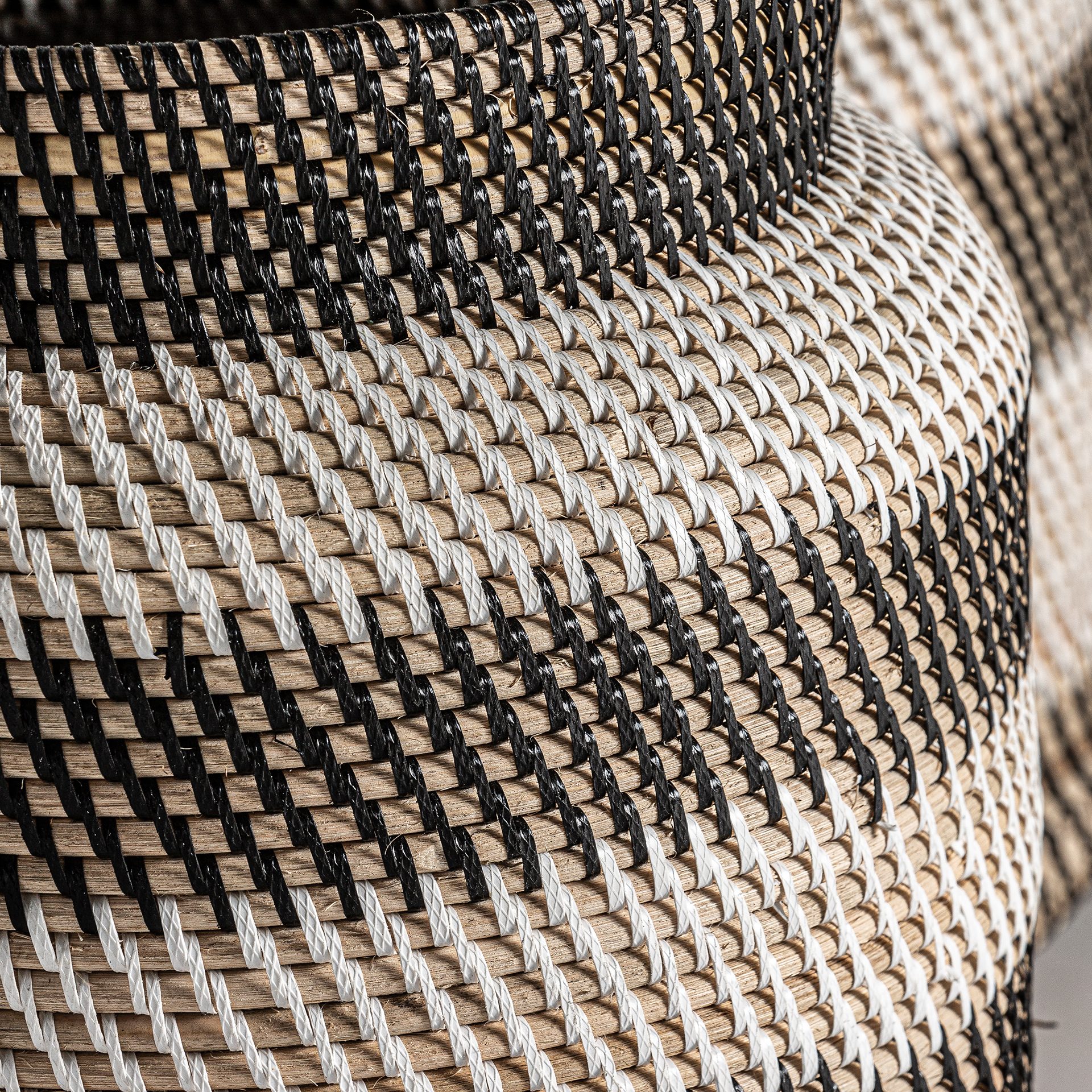 Jarrón j/3 zirba, en color marrón/beige, de estilo étnico. Fabricado en ratán.