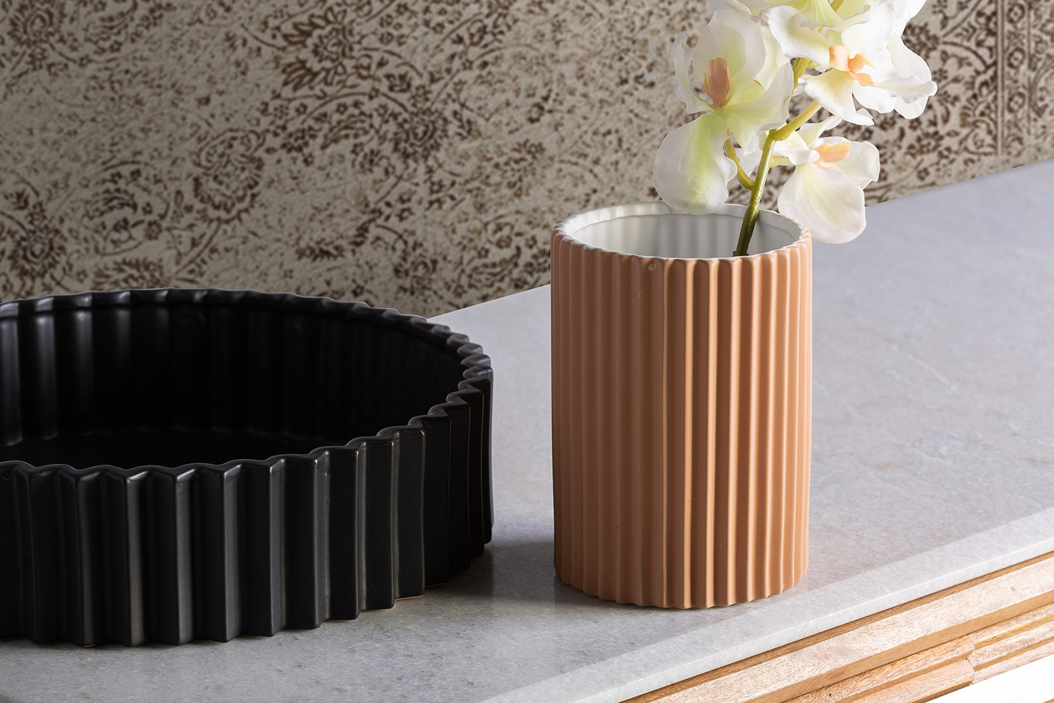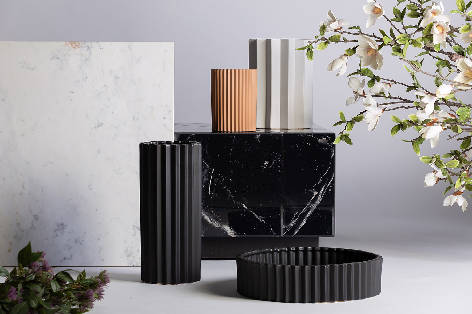 Jarrón plissé stone, en color negro, de estilo art deco. Fabricado en cerámica.