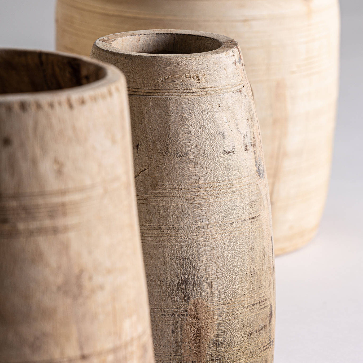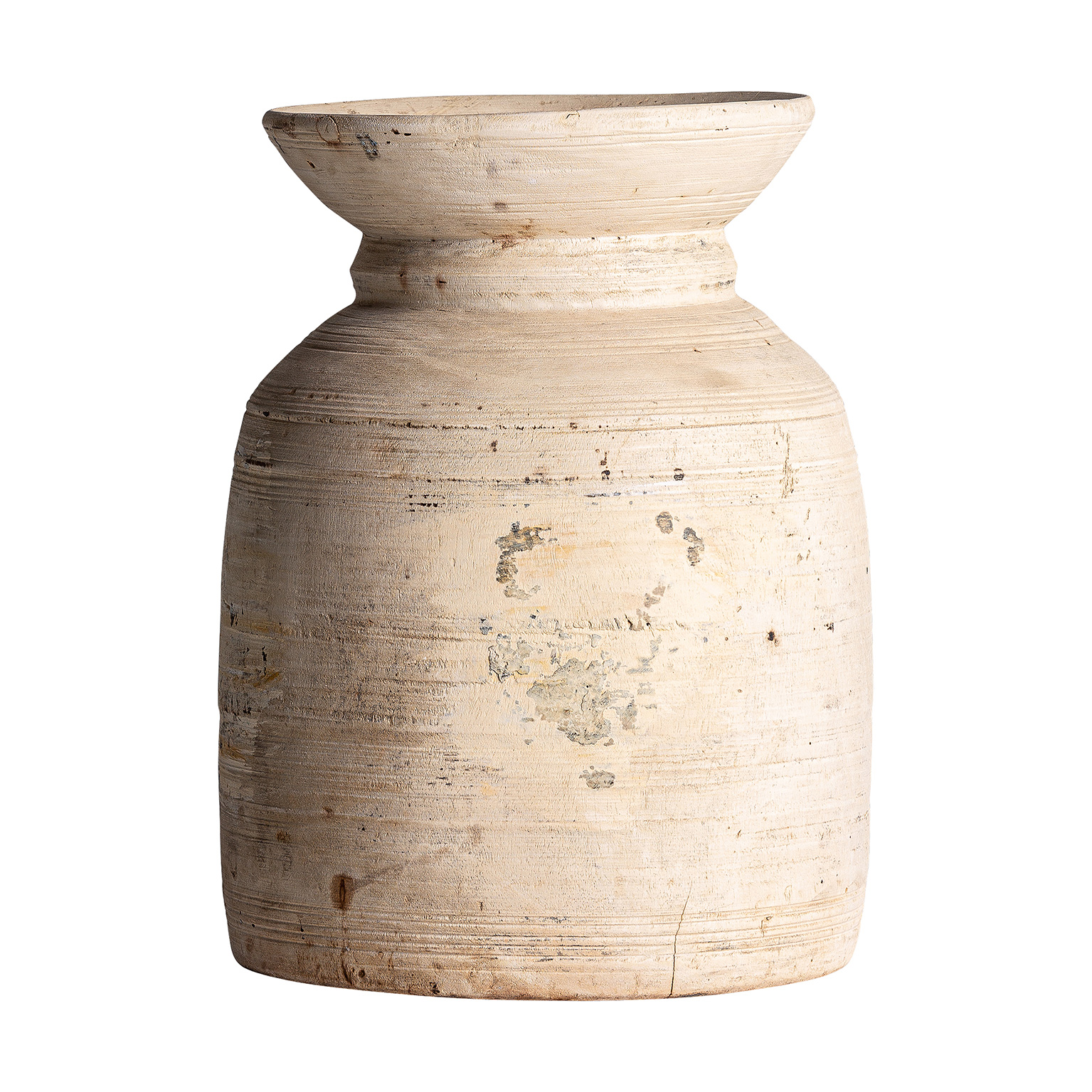 Jarrón Raynal de estilo étnico fabricado en madera suar en color marrón con acabado envejecido.