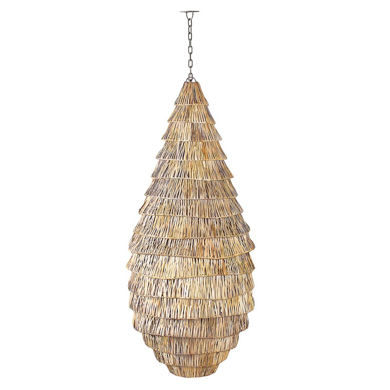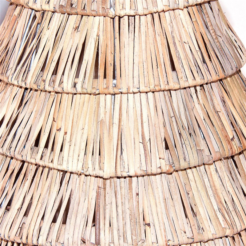 Lámpara de colgar, en color marrón, de estilo étnico. Fabricado en ratán, combinado con hierro.