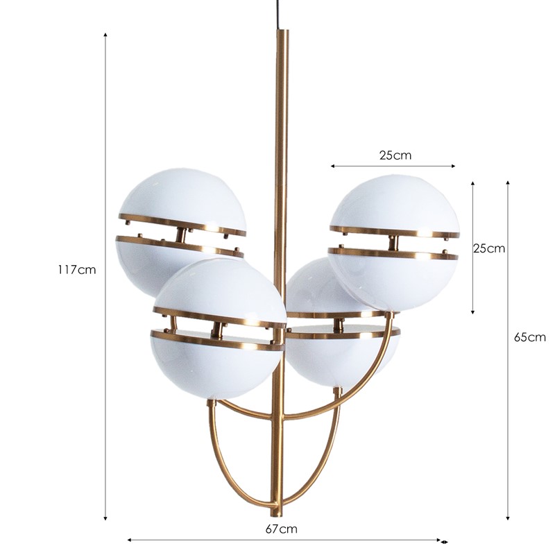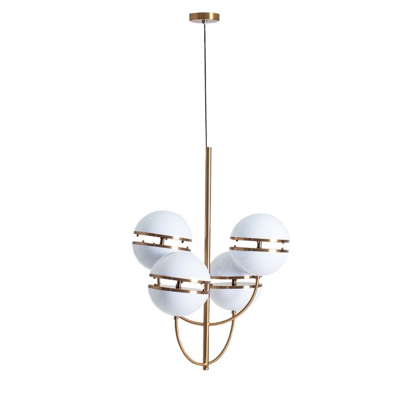 Lámpara de colgar, en color blanco/oro, de estilo art deco. Fabricado en hierro, combinado con cristal. Producto desmontable.
