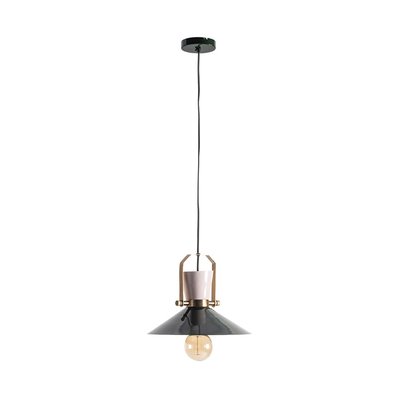 Lámpara de colgar, en color verde/crema, de estilo art deco. Fabricado en hierro.