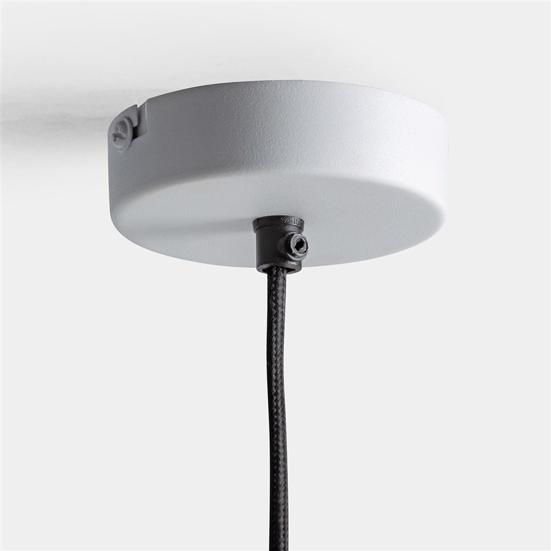 Lámpara de colgar, en color blanco/oro, de estilo art deco. Fabricado en hierro. Producto extensible.