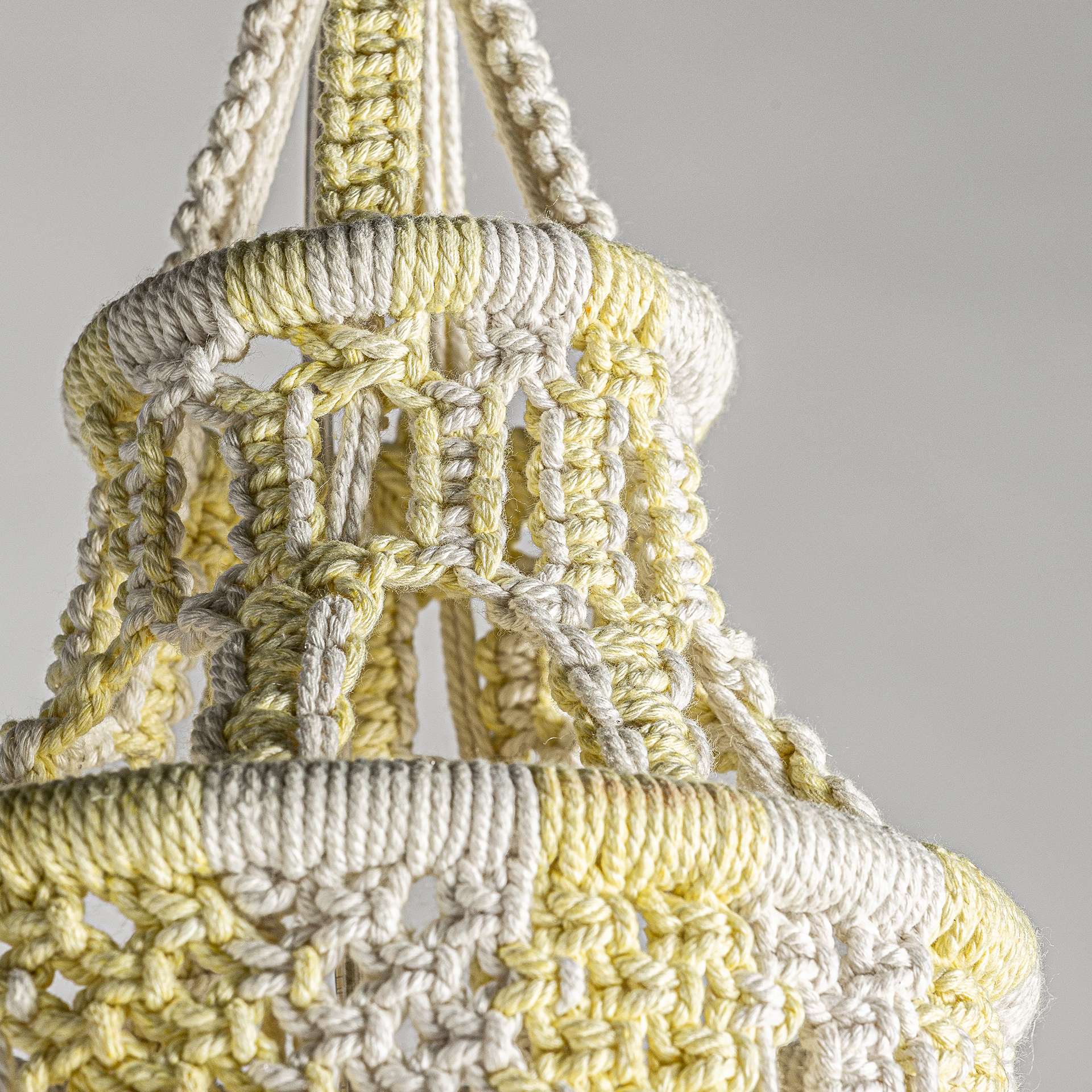 Lámpara de colgar Haussen de estilo étnico, fabricado en algodón en color blanco. Producto plegable.