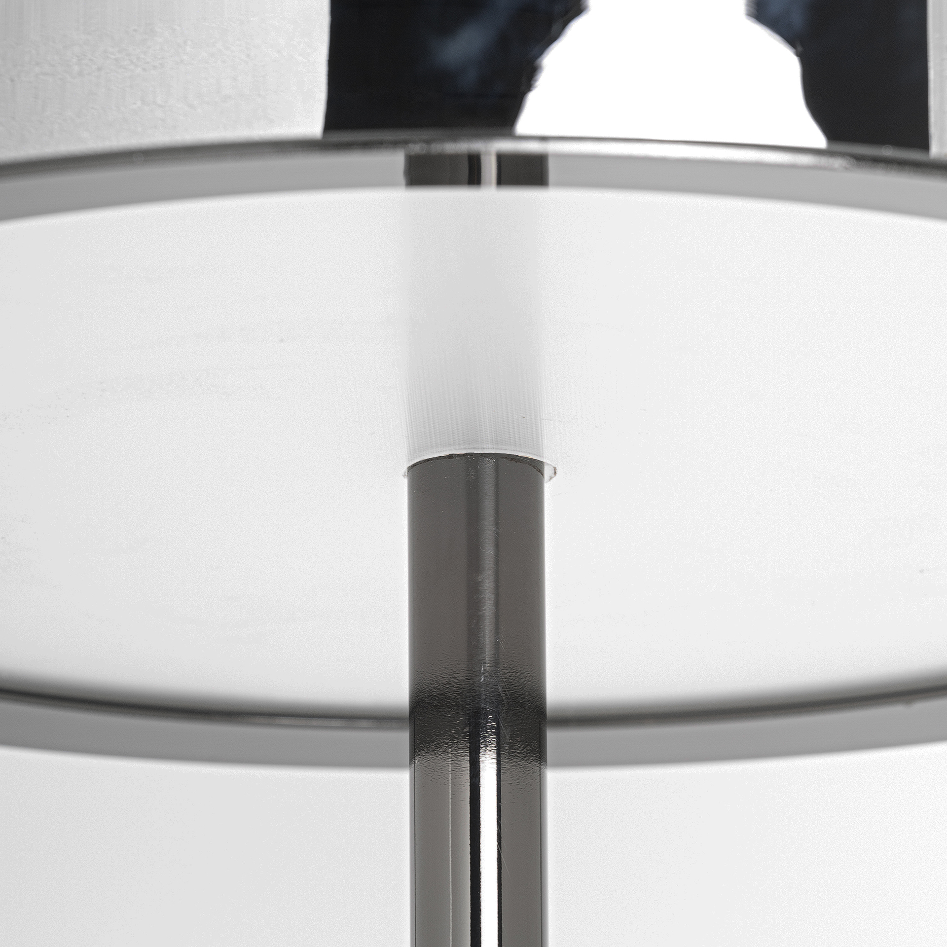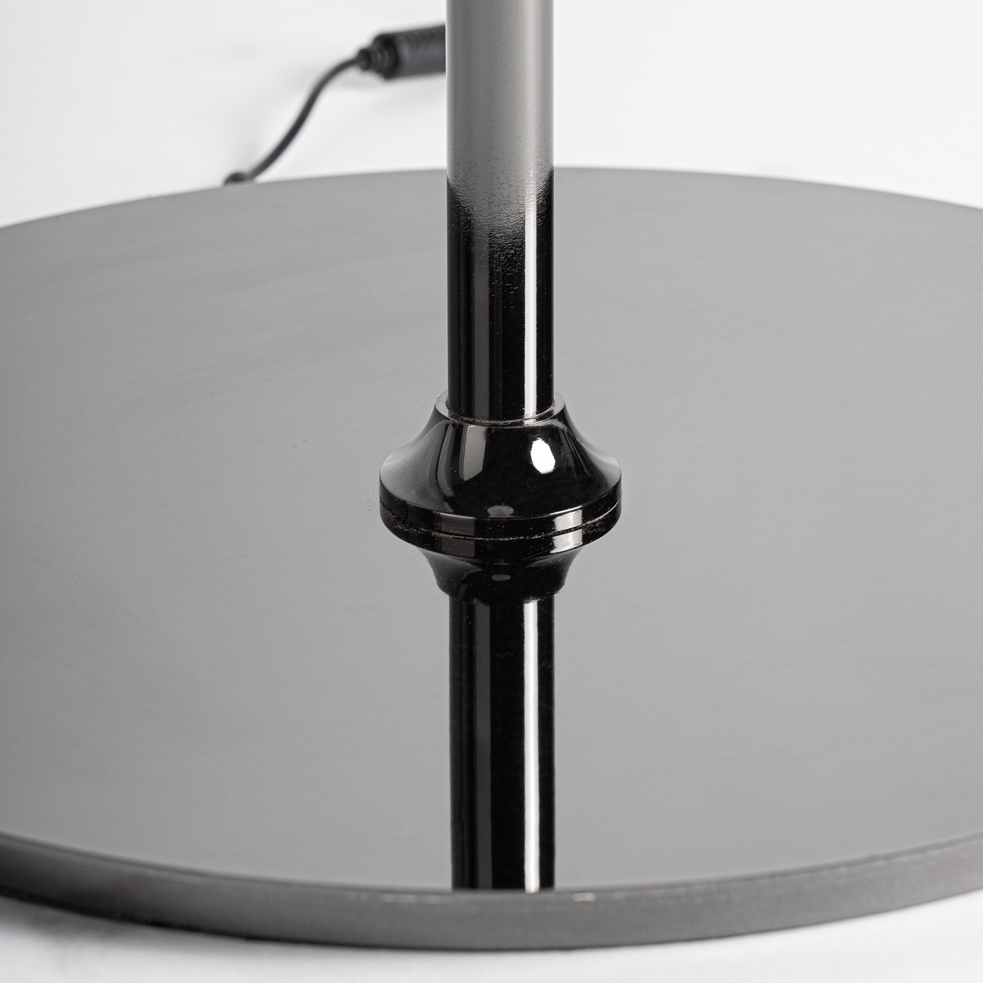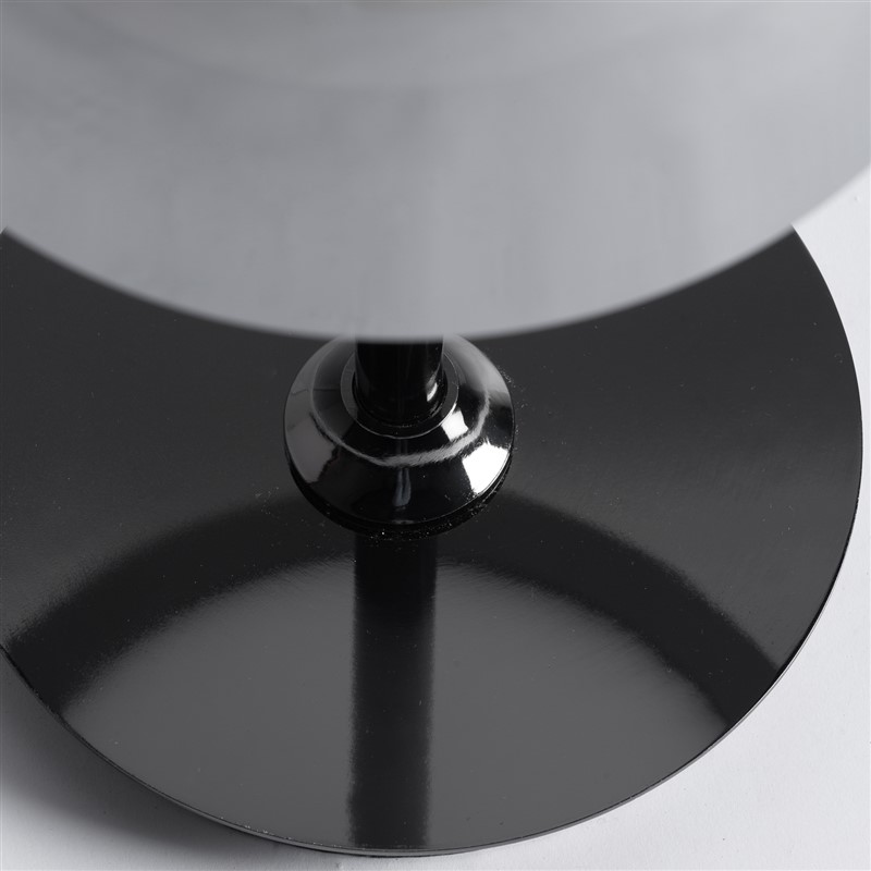 Lámpara de pie, en color negro, de estilo art deco. Fabricado en cristal, combinado con latón y acrílico. Producto desmontable.