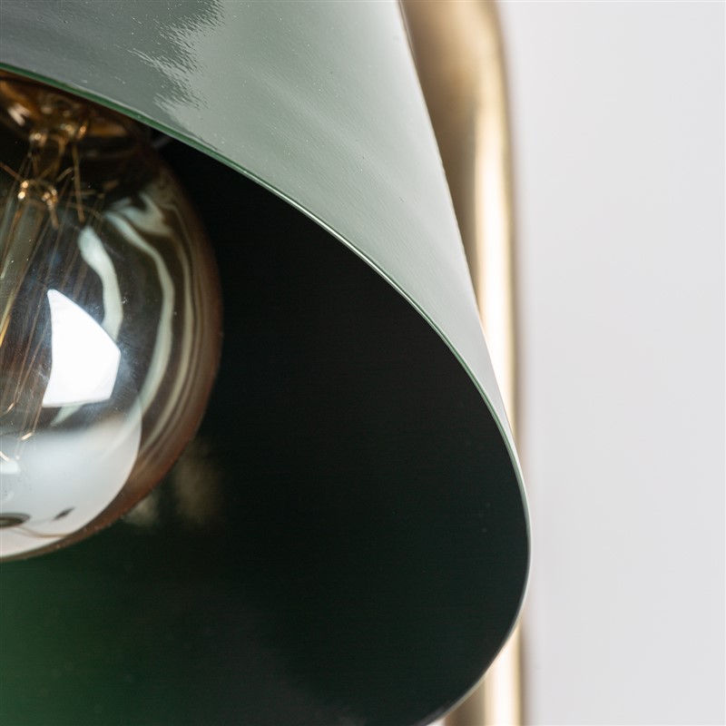 Lámpara de pie, en color verde/oro, de estilo art deco. Fabricado en hierro, combinado con latón.