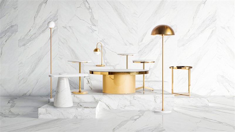 Lámpara de pie, en color blanco/oro, de estilo art deco. Fabricado en latón, combinado con cristal y mármol. Producto desmontable. Compatible con: 27760.