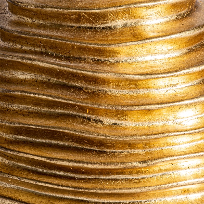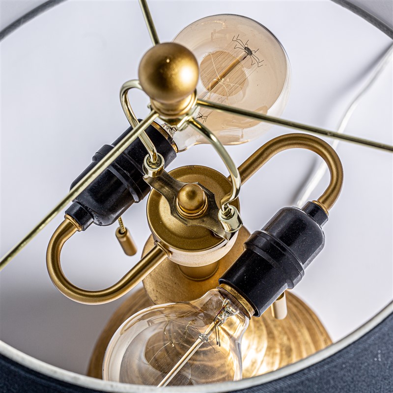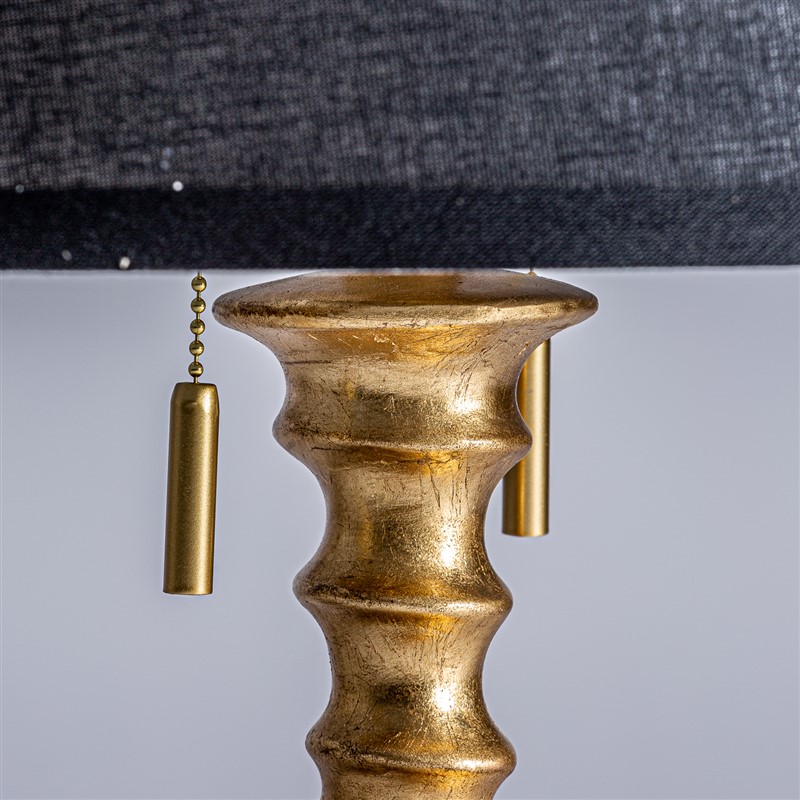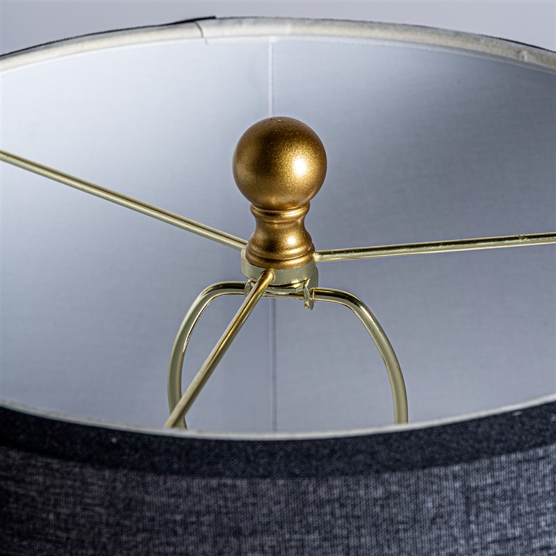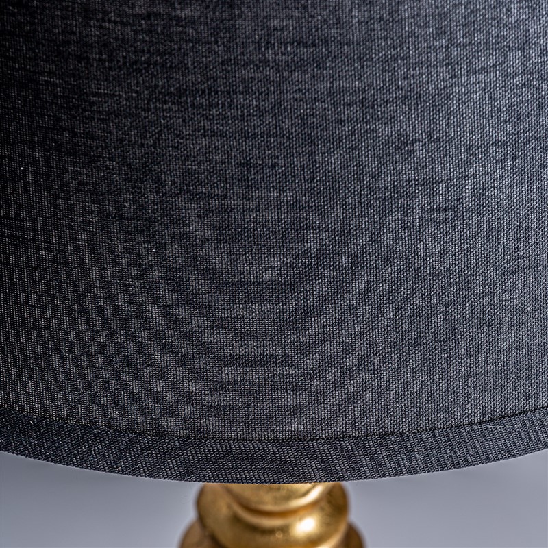 Lámpara de sobremesa en color oro negro de estilo art deco. Fabricado en hierro combinado con resina y lino. Producto desmontable.