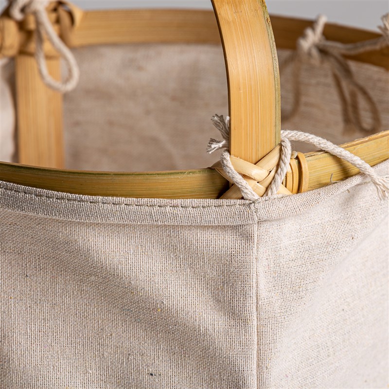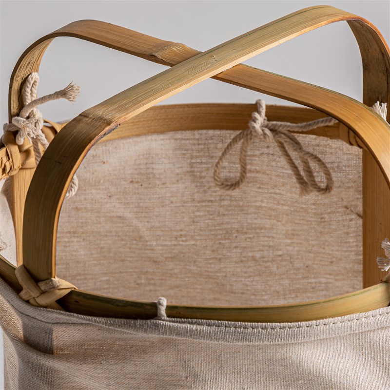 Lámpara de sobremesa, en color marrón, de estilo contemporáneo. Fabricado en bambú, combinado con lino y hierro.