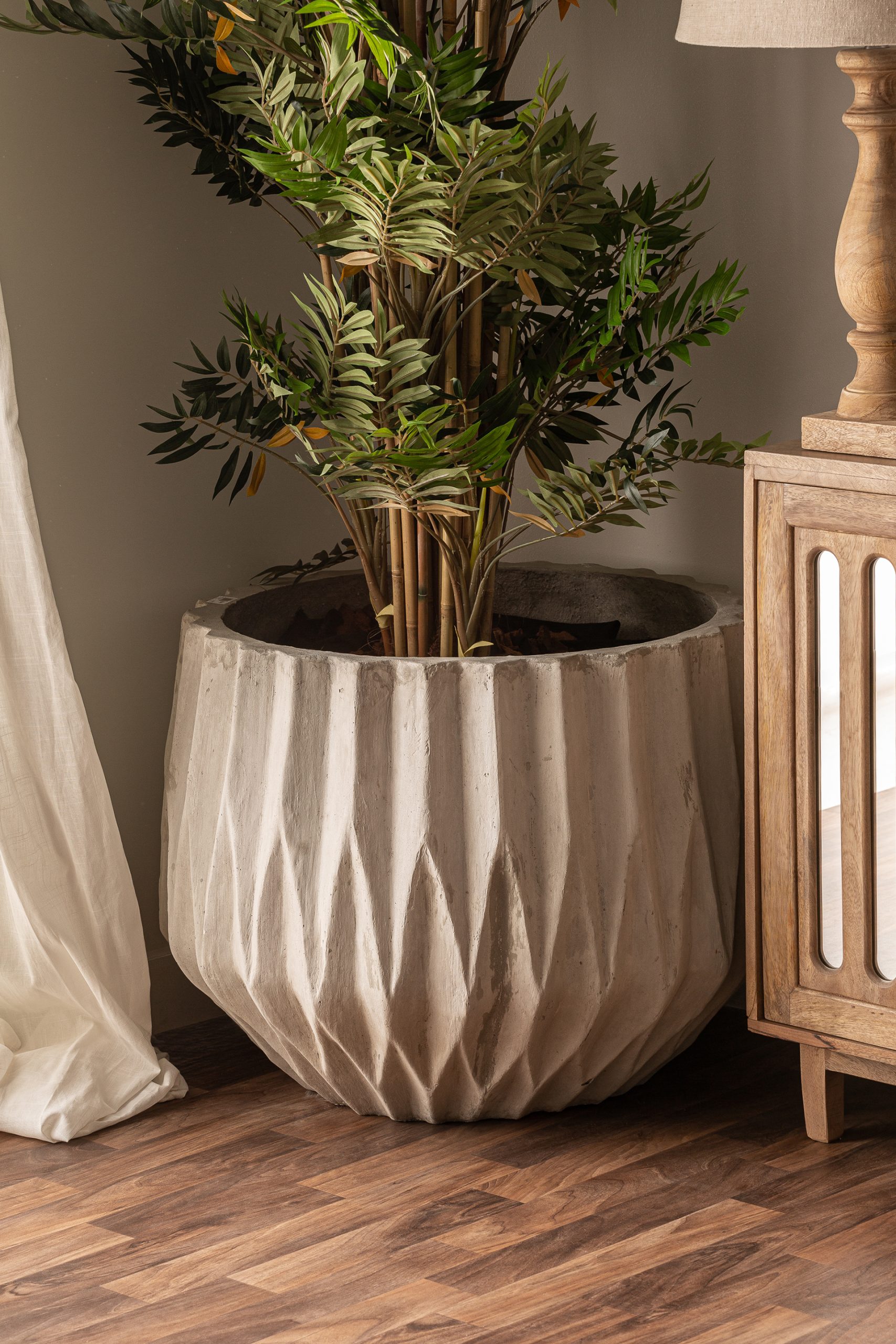 Macetero j/2 essing, en color blanco, de estilo contemporáneo. Fabricado en cerámica.