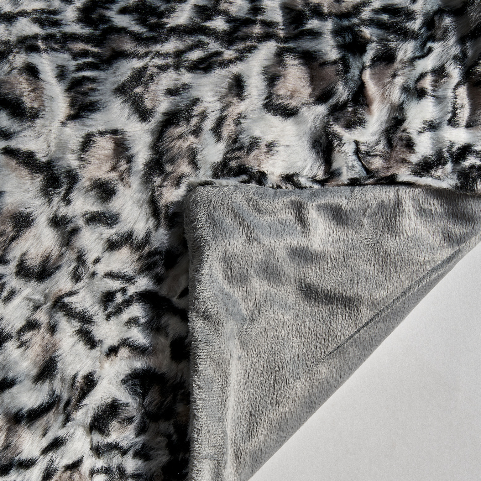 Manta Leopardo de estilo nórdico, fabricado en microfibra en color blanco en color negro.