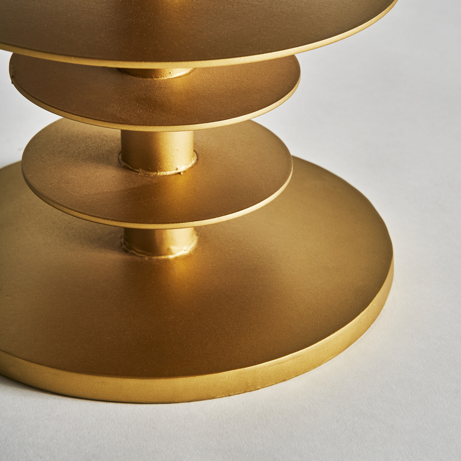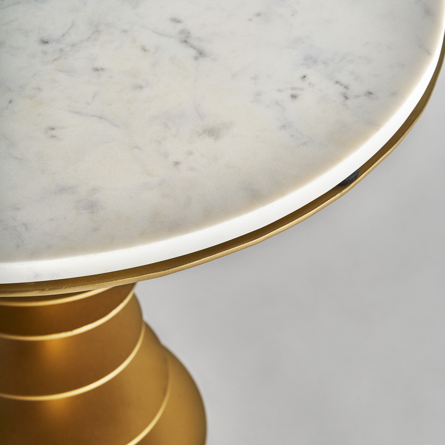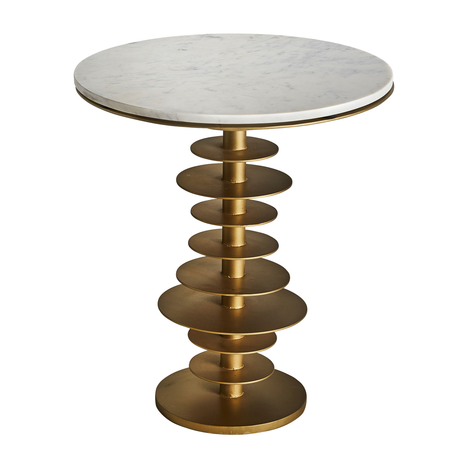 Mesa auxiliar lauw, en color blanco/oro viejo, de estilo art deco. Fabricado en hierro, combinado con mármol. Producto desmontable.