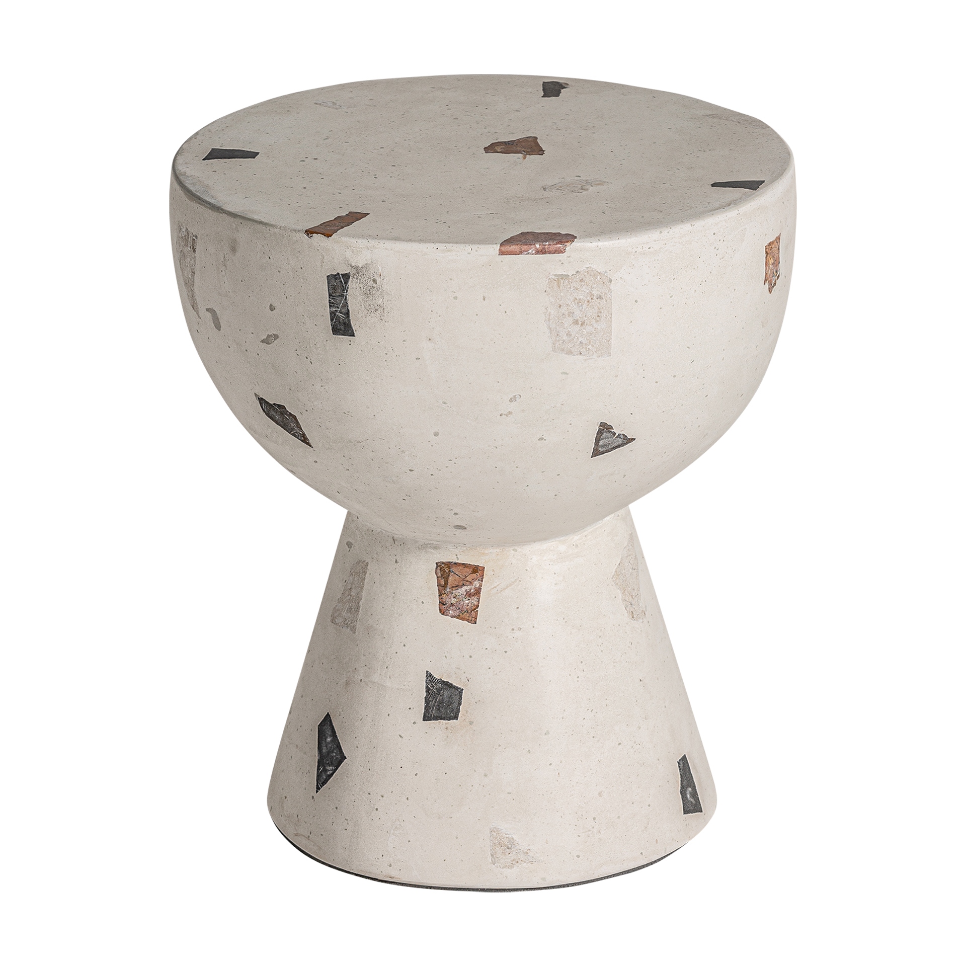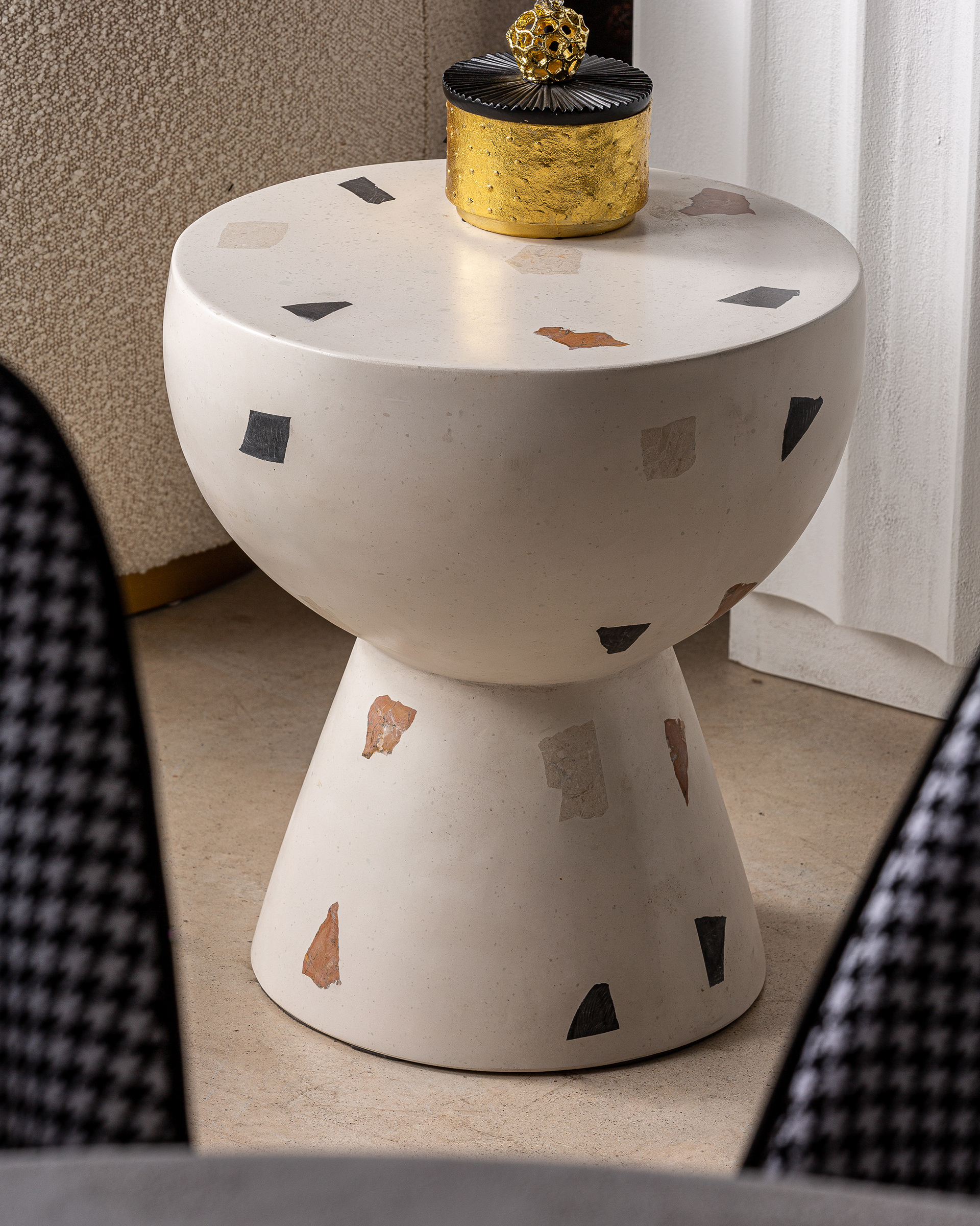 Mesa auxiliar massa, de estilo contemporáneo. Fabricado en terrazo, en color blanco.