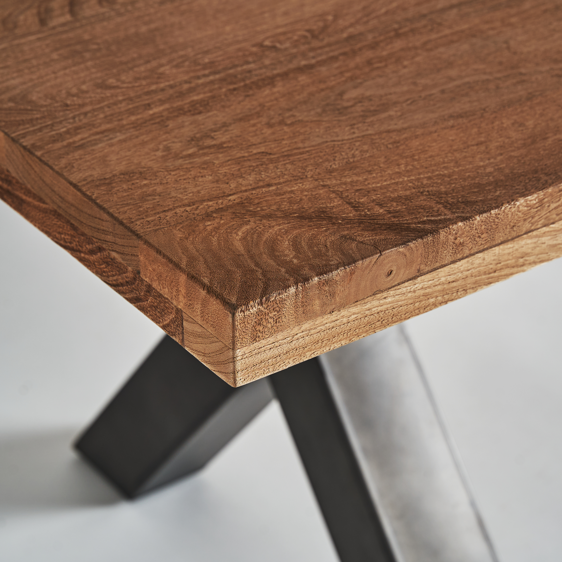 Mesa comedor gard, de estilo industrial. Fabricado en madera de mango, en color negro, combinado con hierro, en color natural. Producto desmontable.