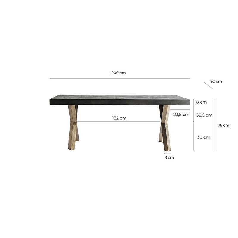 Mesa comedor kapie, de estilo art deco. Fabricado en hierro, en color oro, combinado con madera de olmo. Producto desmontable.